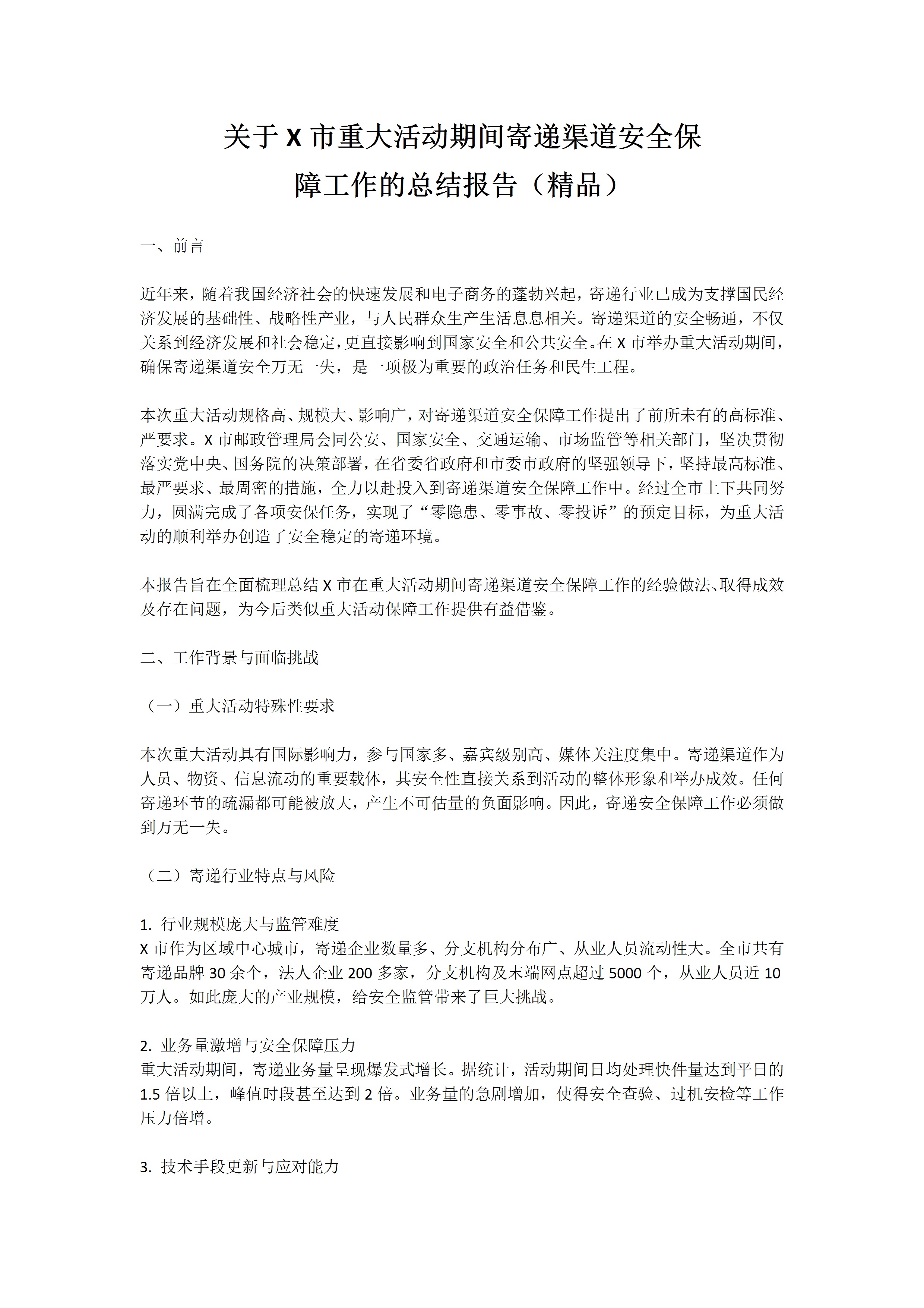 关于X市重大活动期间寄递渠道安全保障工作的总结报告精品3.3 0 文档