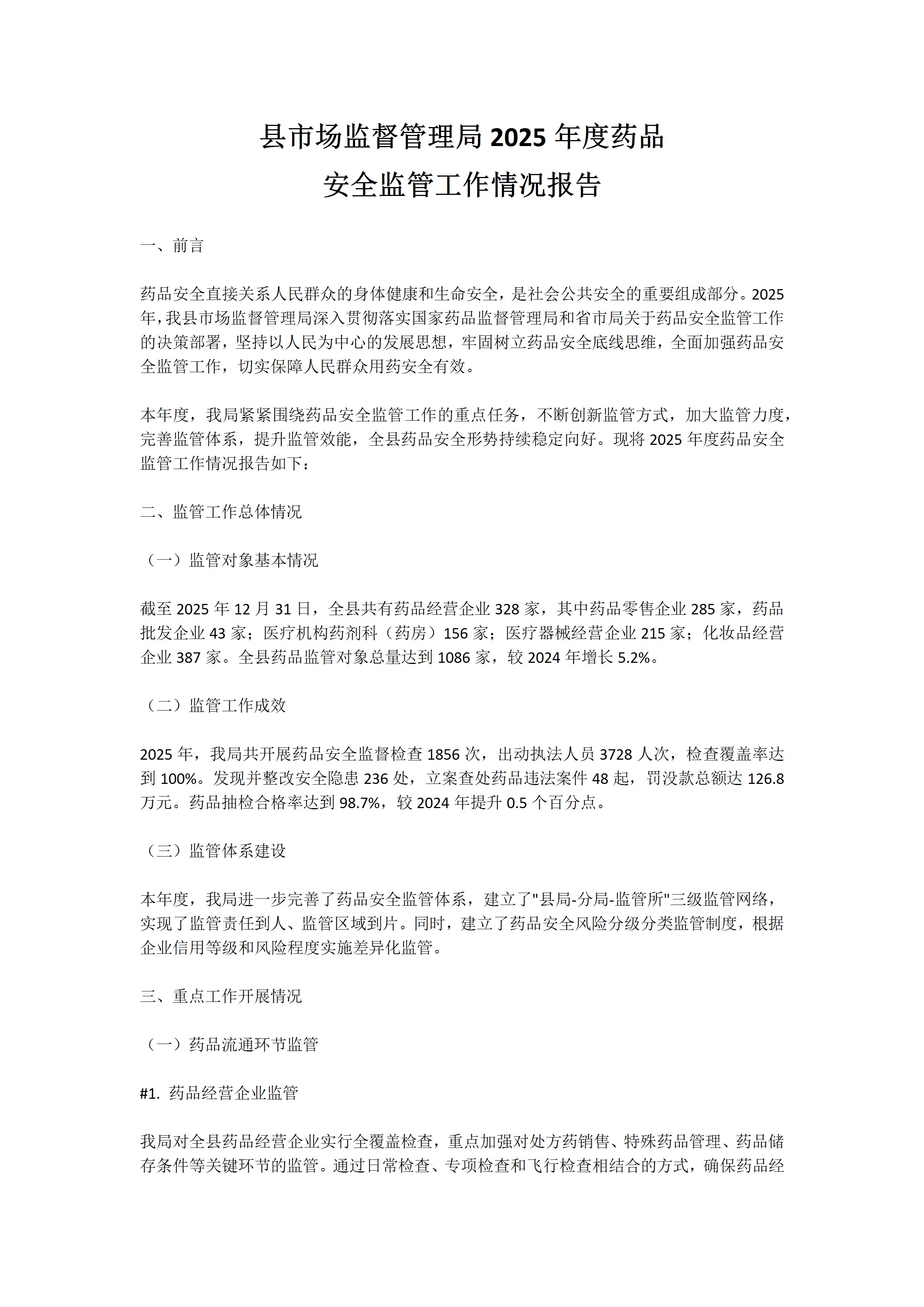 / 县市场监督管理局2025年度药品安全监管工作情况报告3.3 0 文档