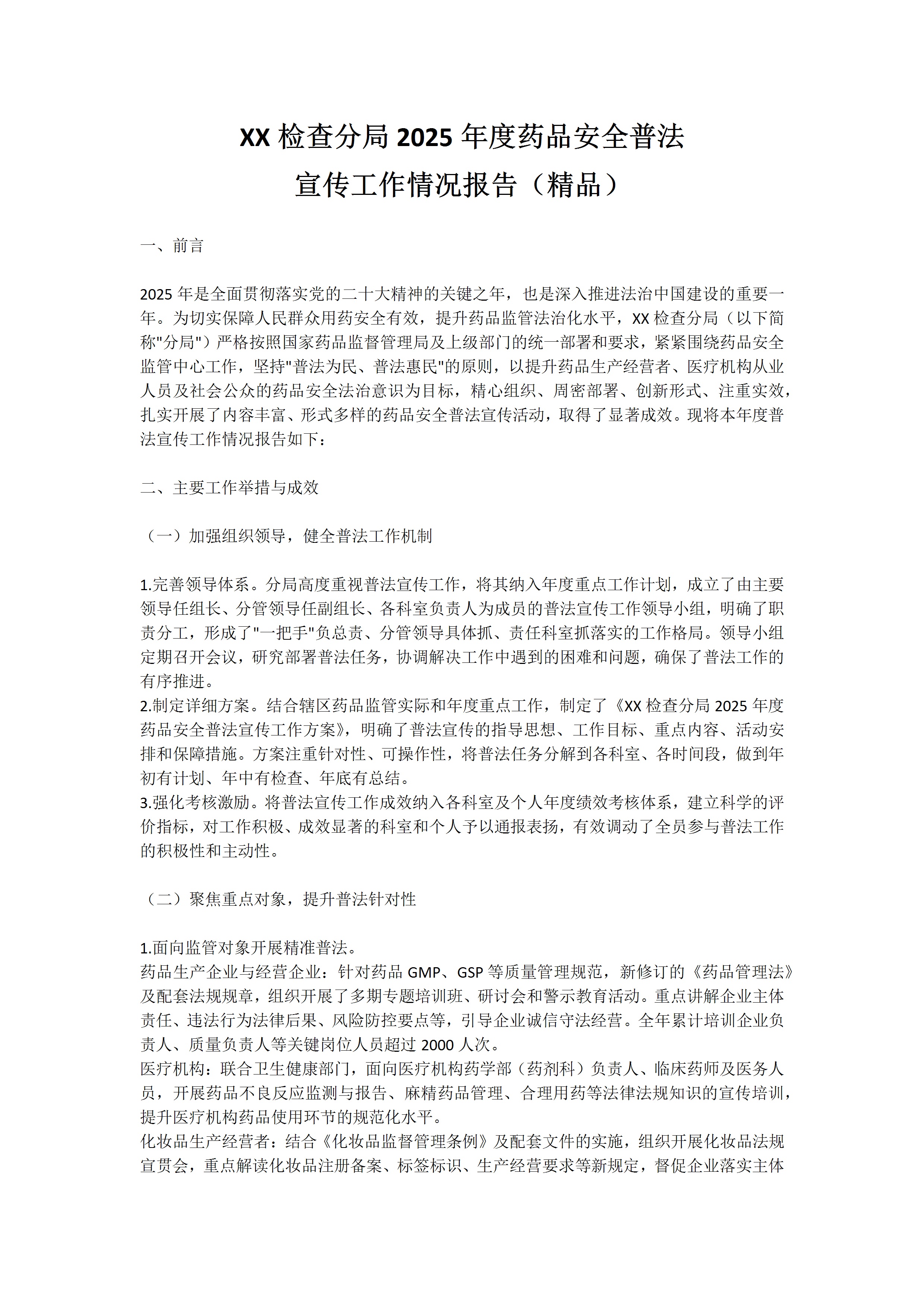 xx检查分局2025年度药品安全普法宣传工作情况报告精品3.3 0 文档