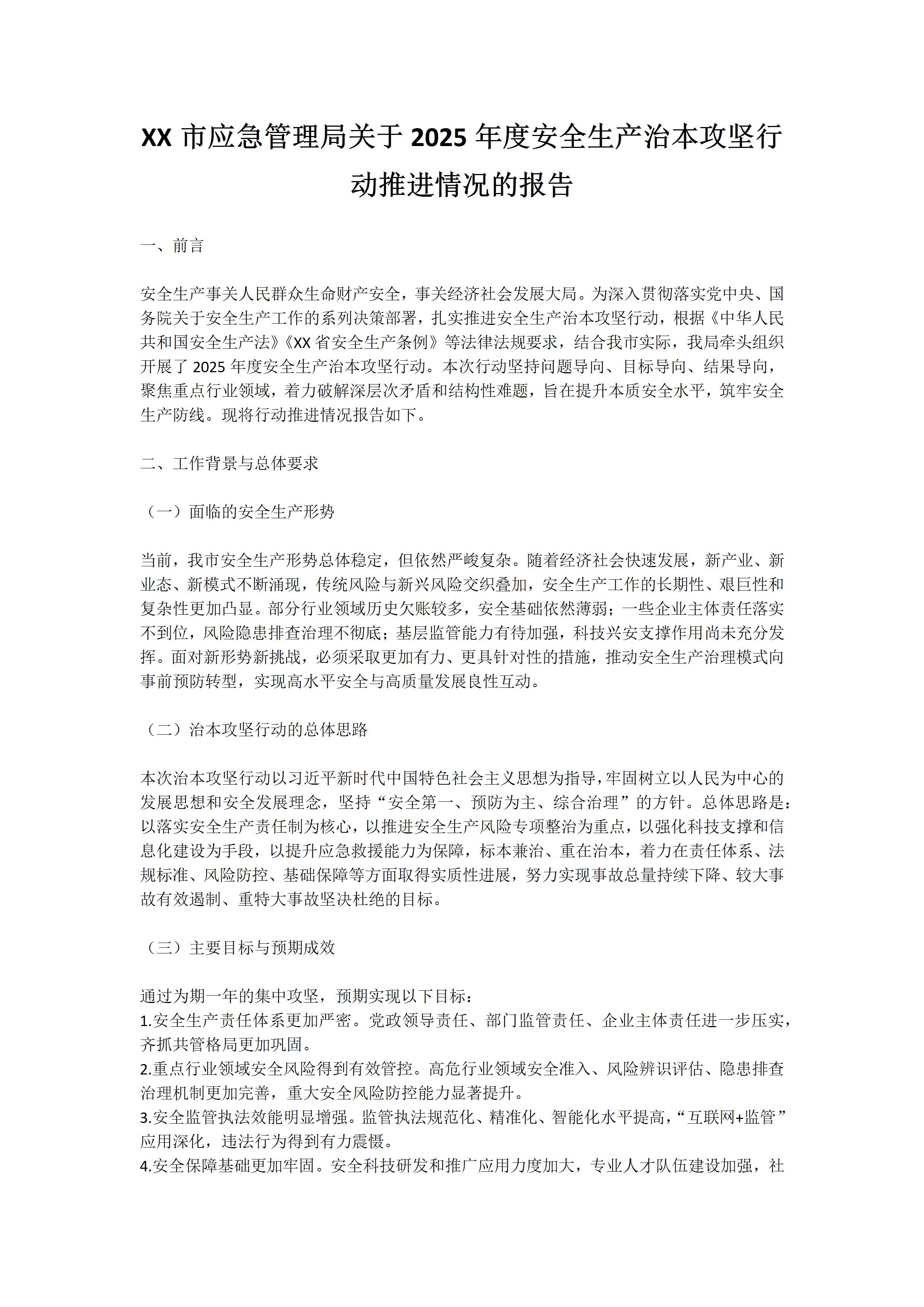 xx市应急管理局关于2025年度安全生产治本攻坚行动推进情况的报告3.3 0 文档