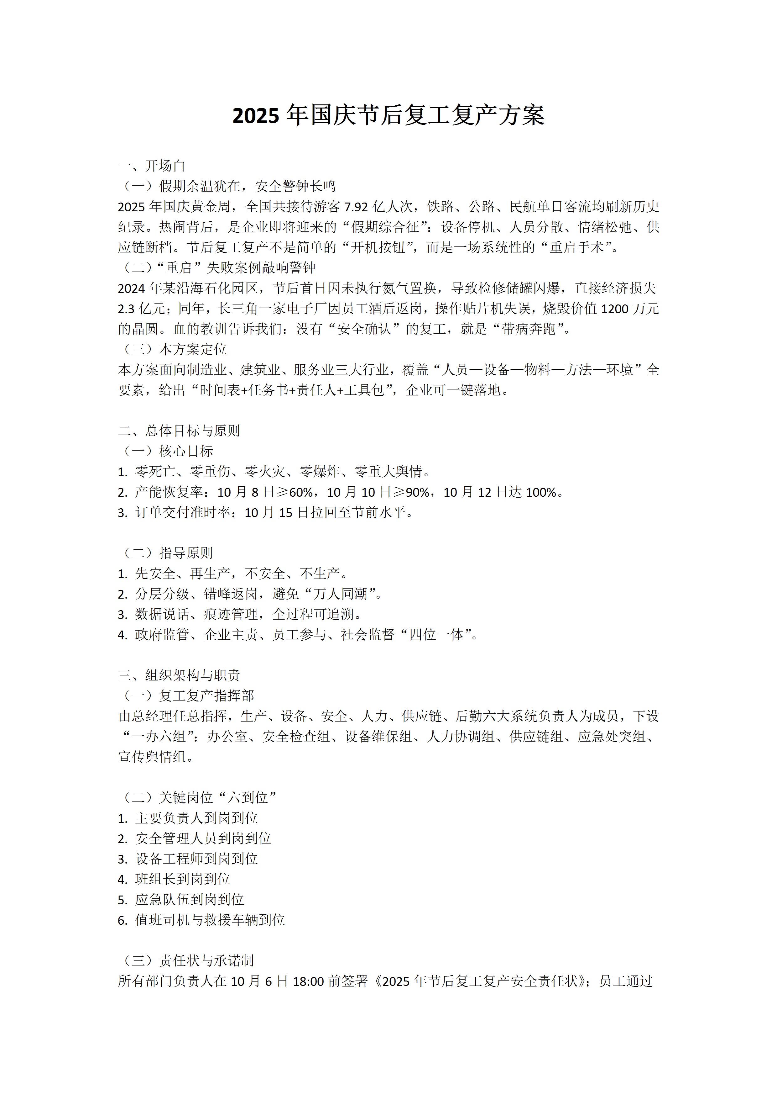 / 2025年国庆节后复工复产方案 文档25.10.8