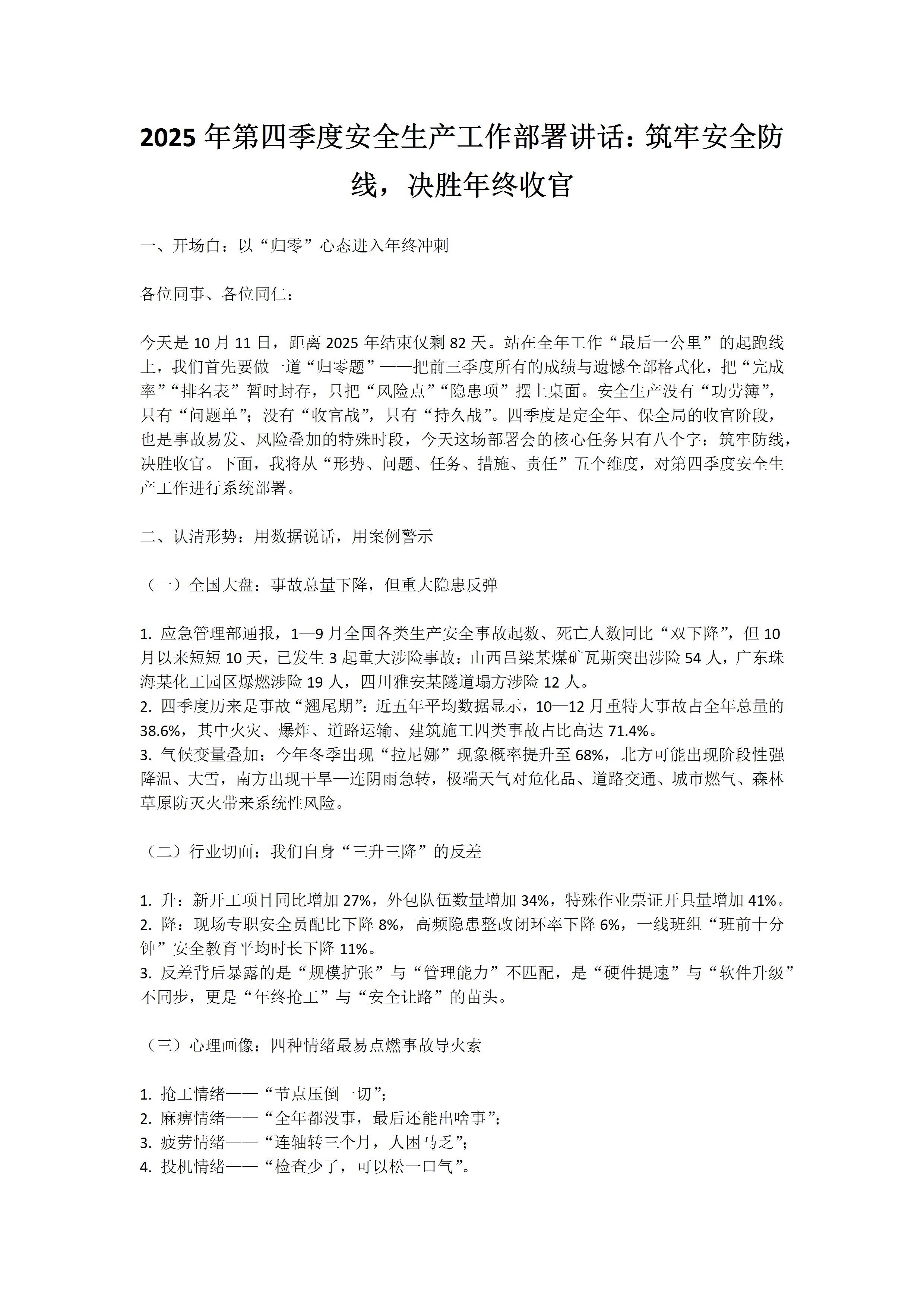 2025年第四季度安全生产工作部署讲话筑牢安全防线,决胜年终收官 文档25.10.11