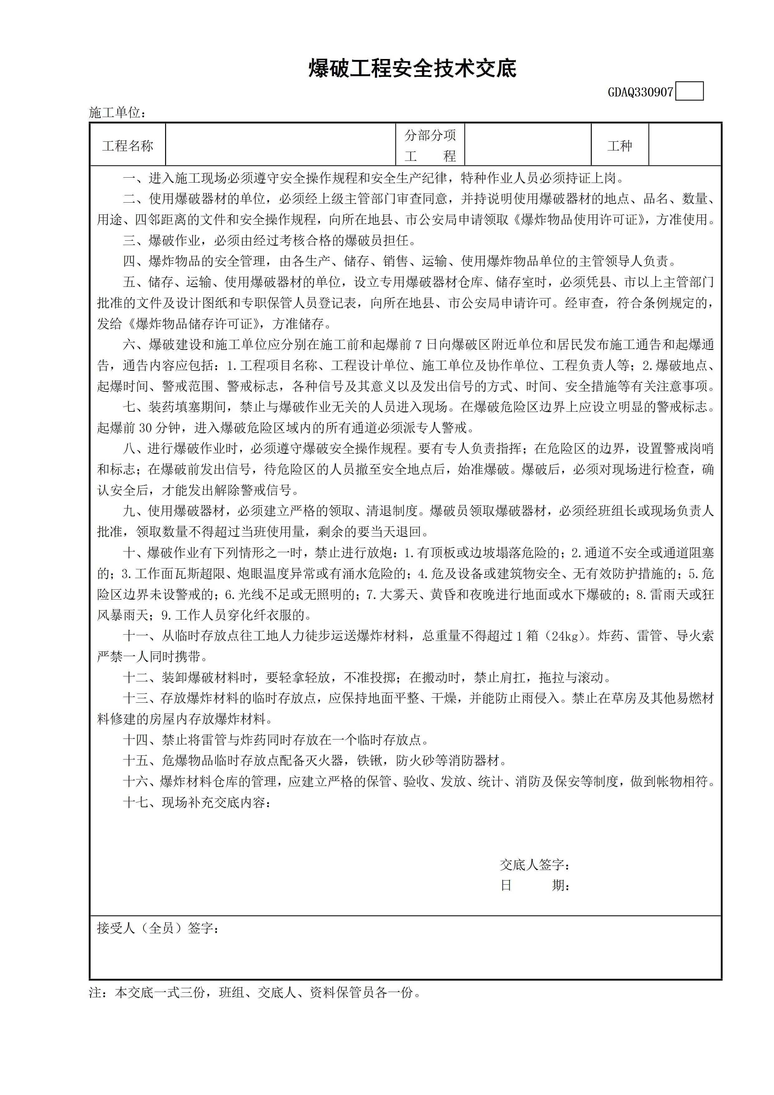 / 爆破工程安全技术交底GDAQ330907[文档]