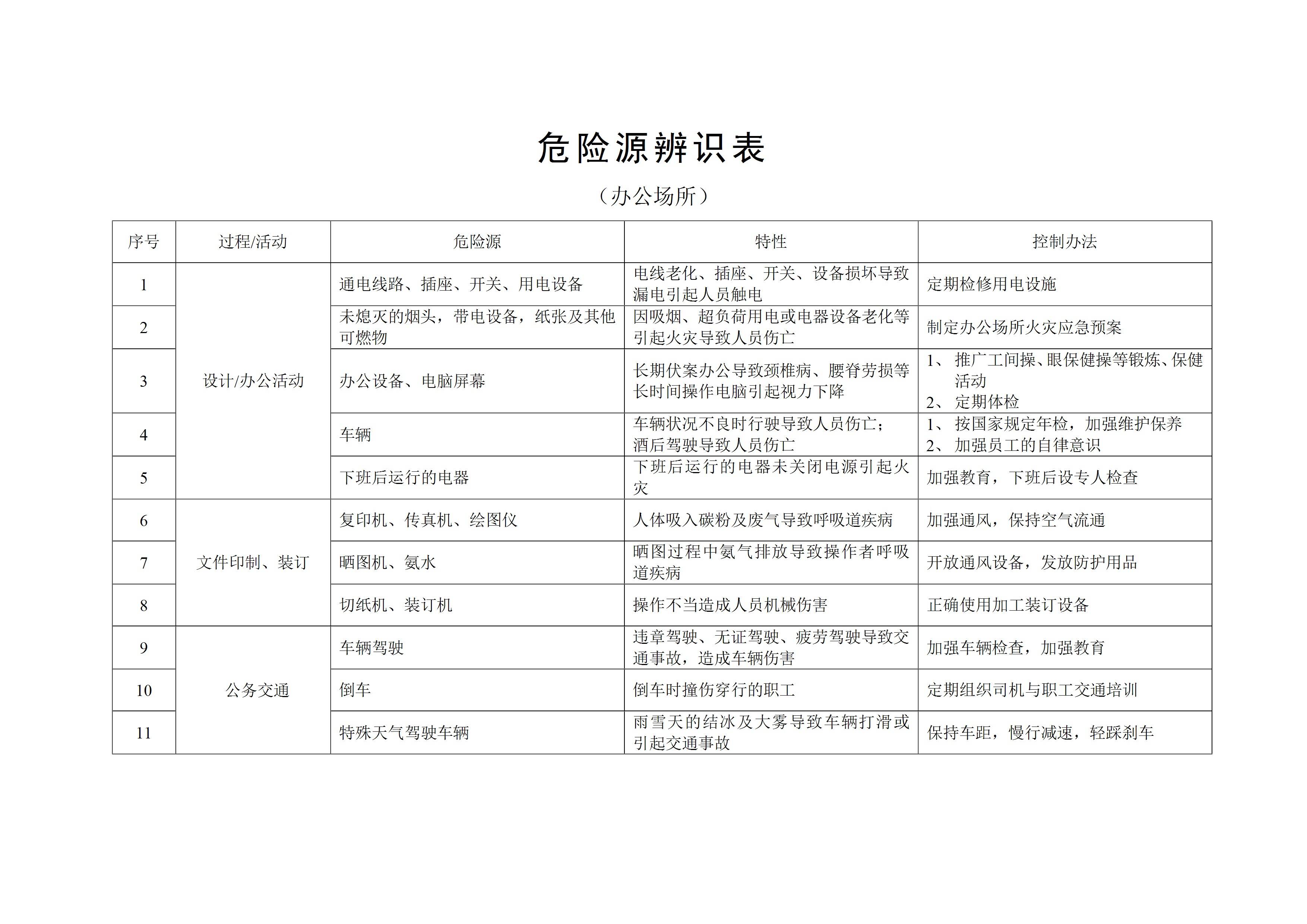 / 办公室危险源辨识清单[文档]