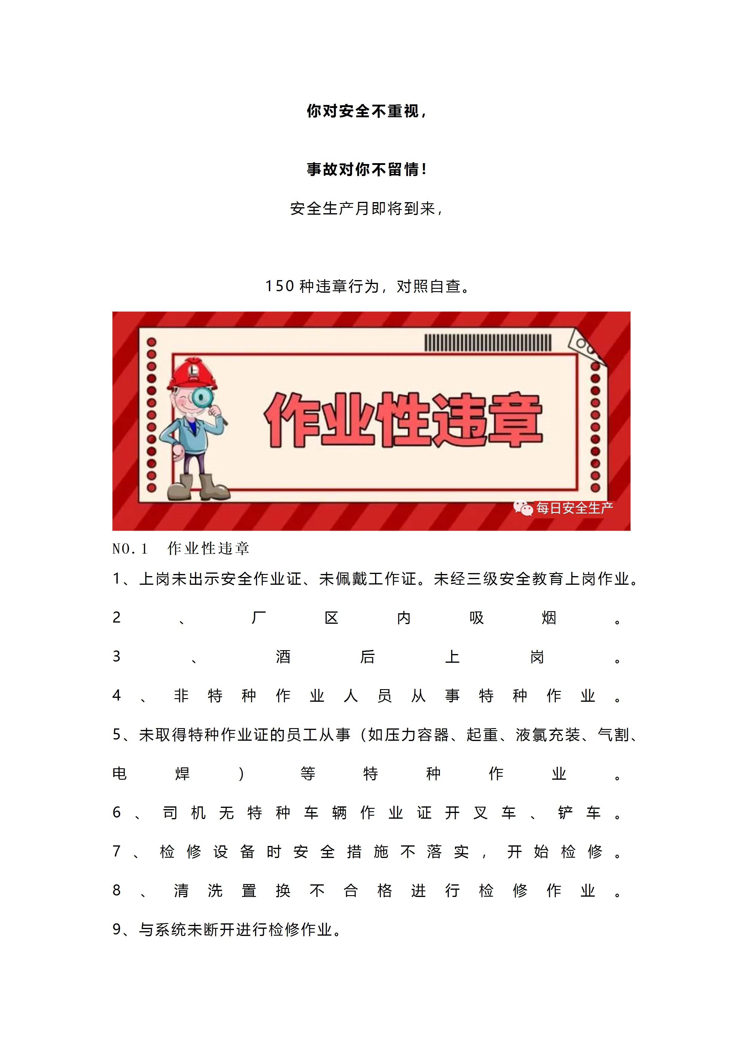 保命守则150种违章,14不准,8个必须,6大禁令,6大严格[文档]