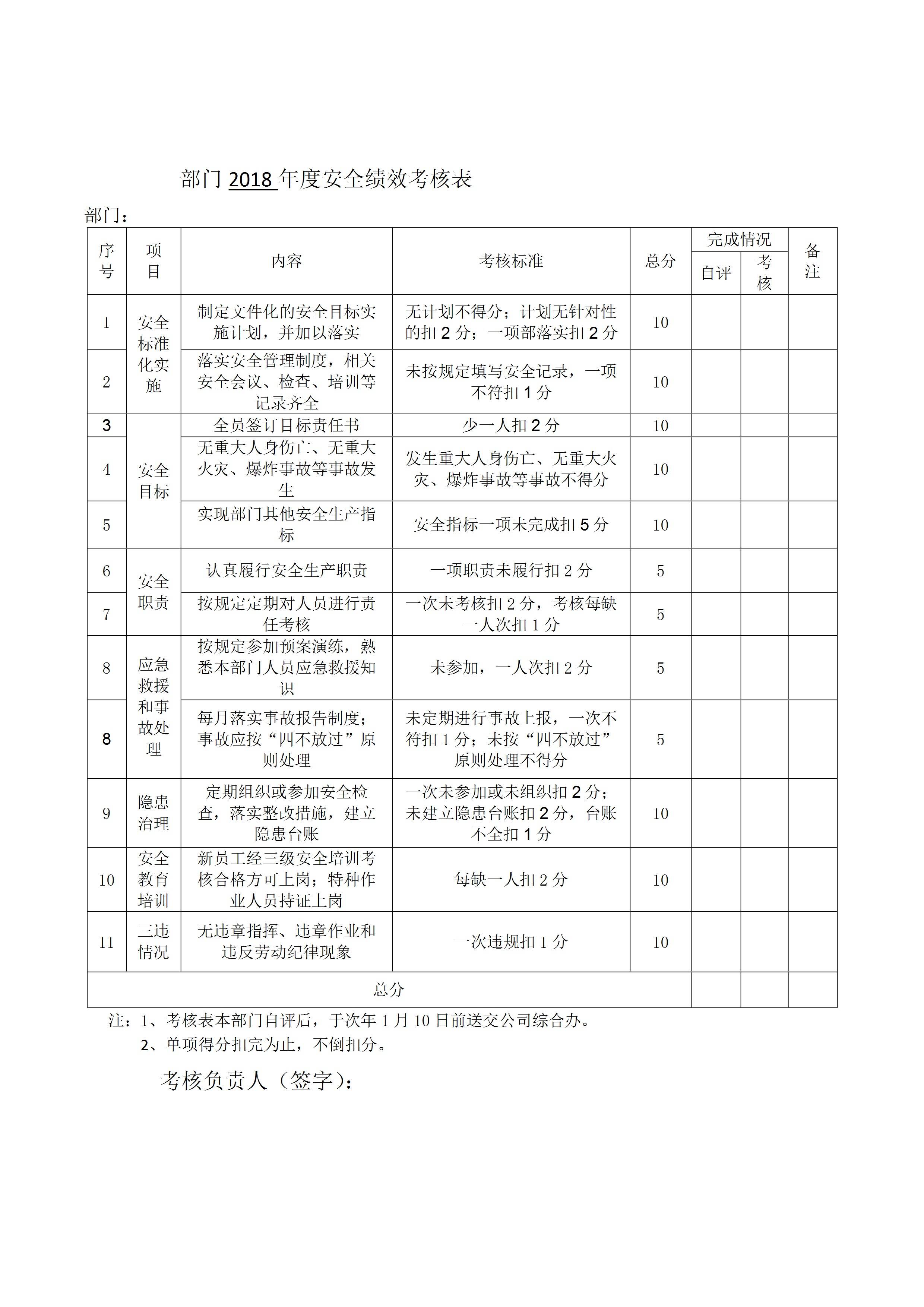 部门年度度安全绩效考核表[文档]