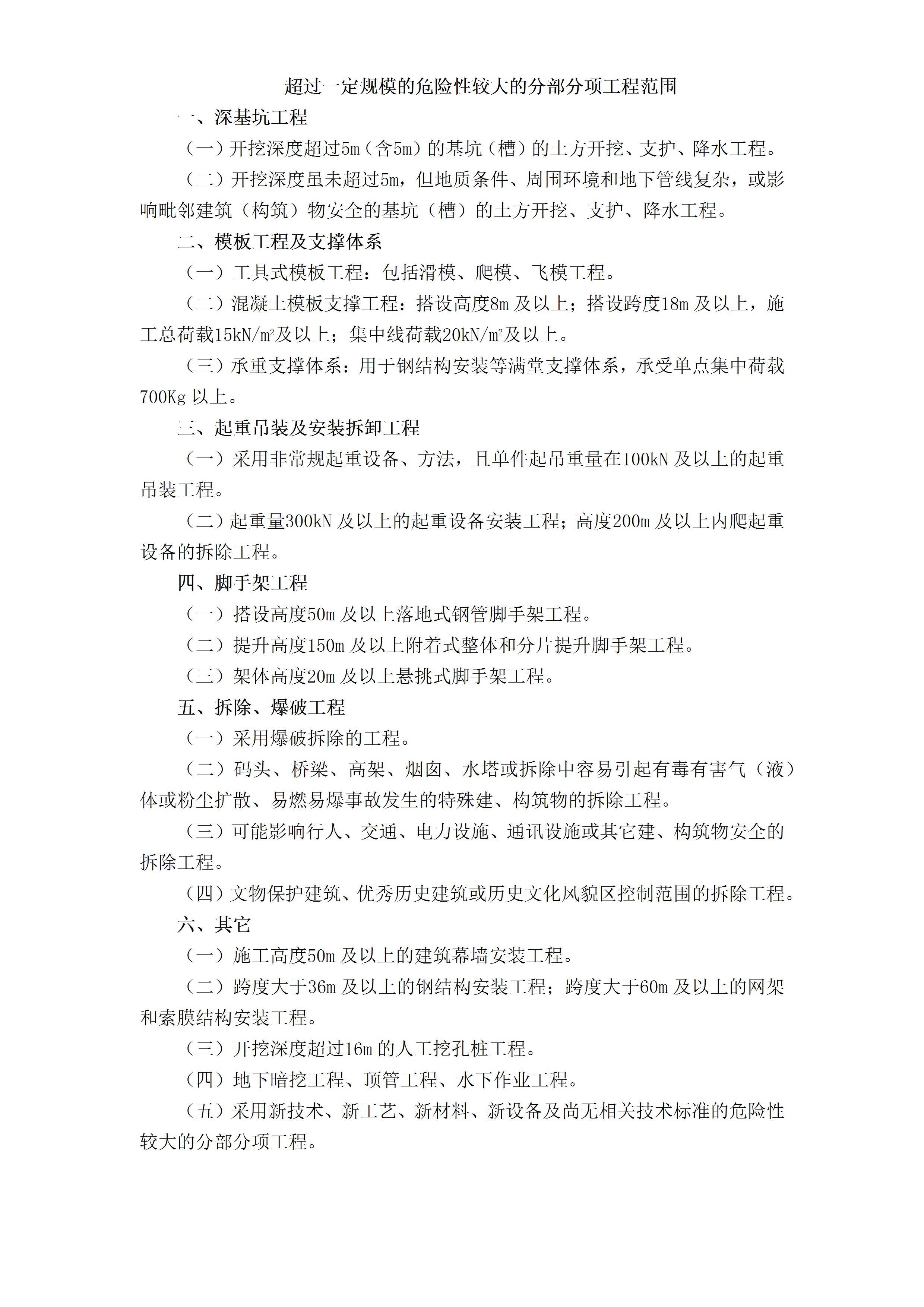 超过一定规模的危险性较大的分部分项工程范围[文档]