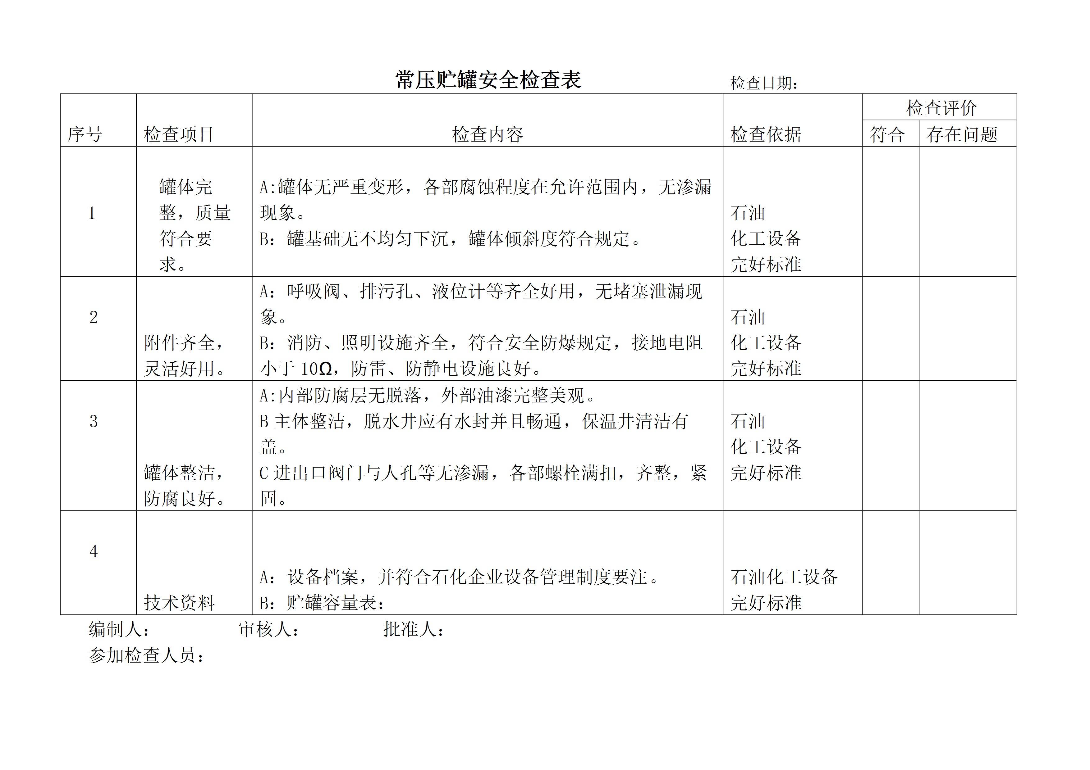 常压贮罐安全检查表[文档]