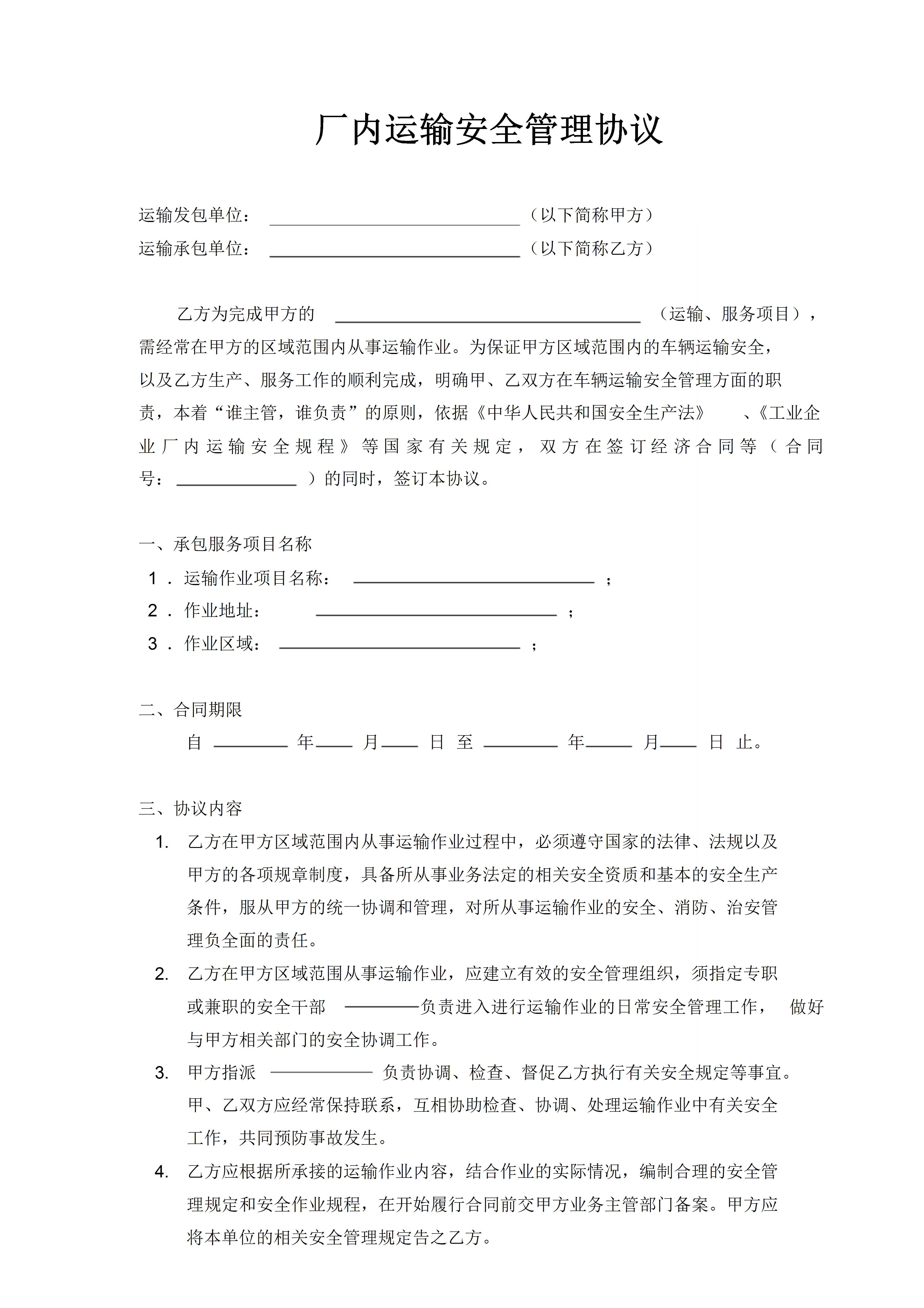 / 厂内运输安全管理协议[文档]