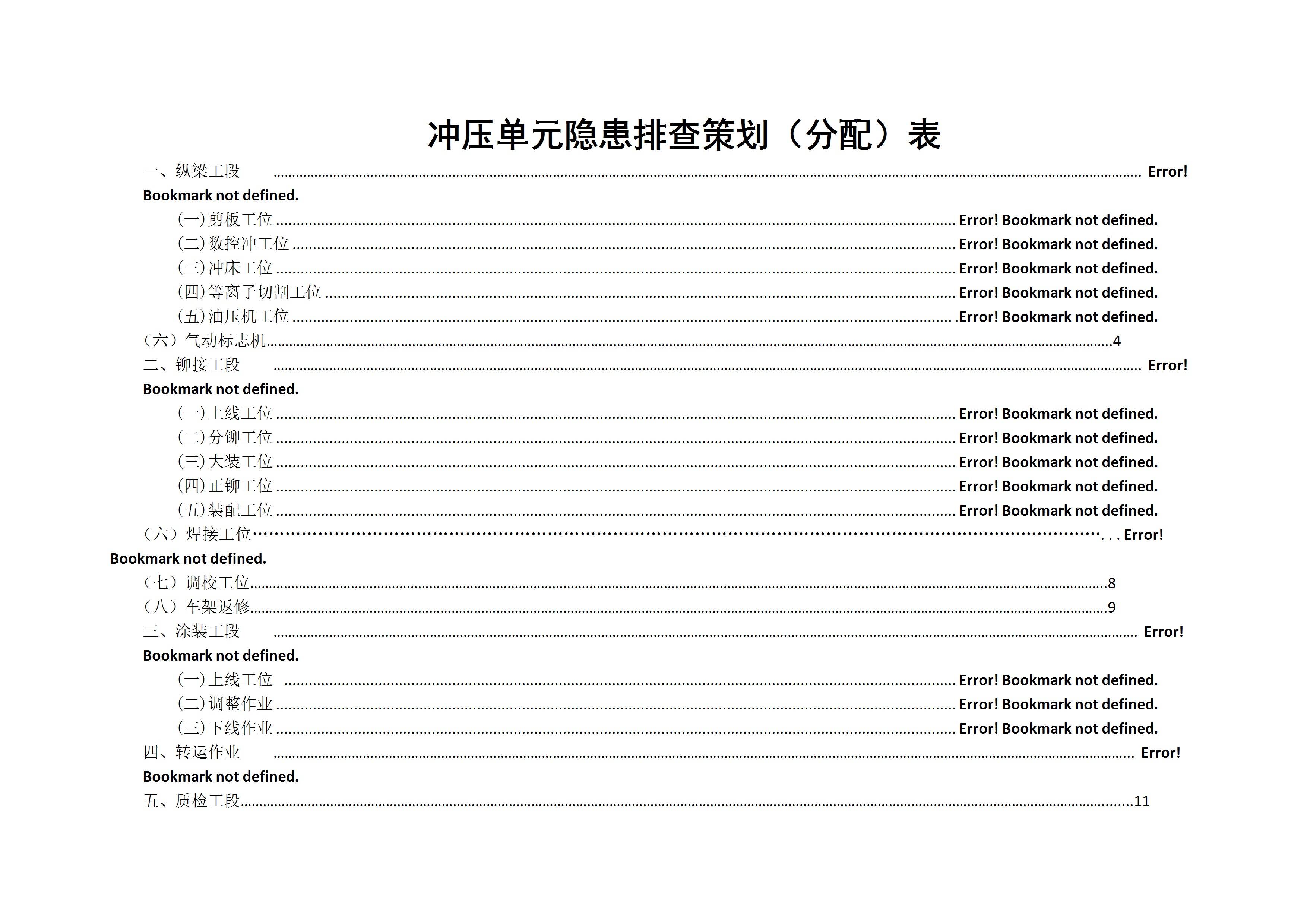冲压工艺隐患排查策划分配表[文档]