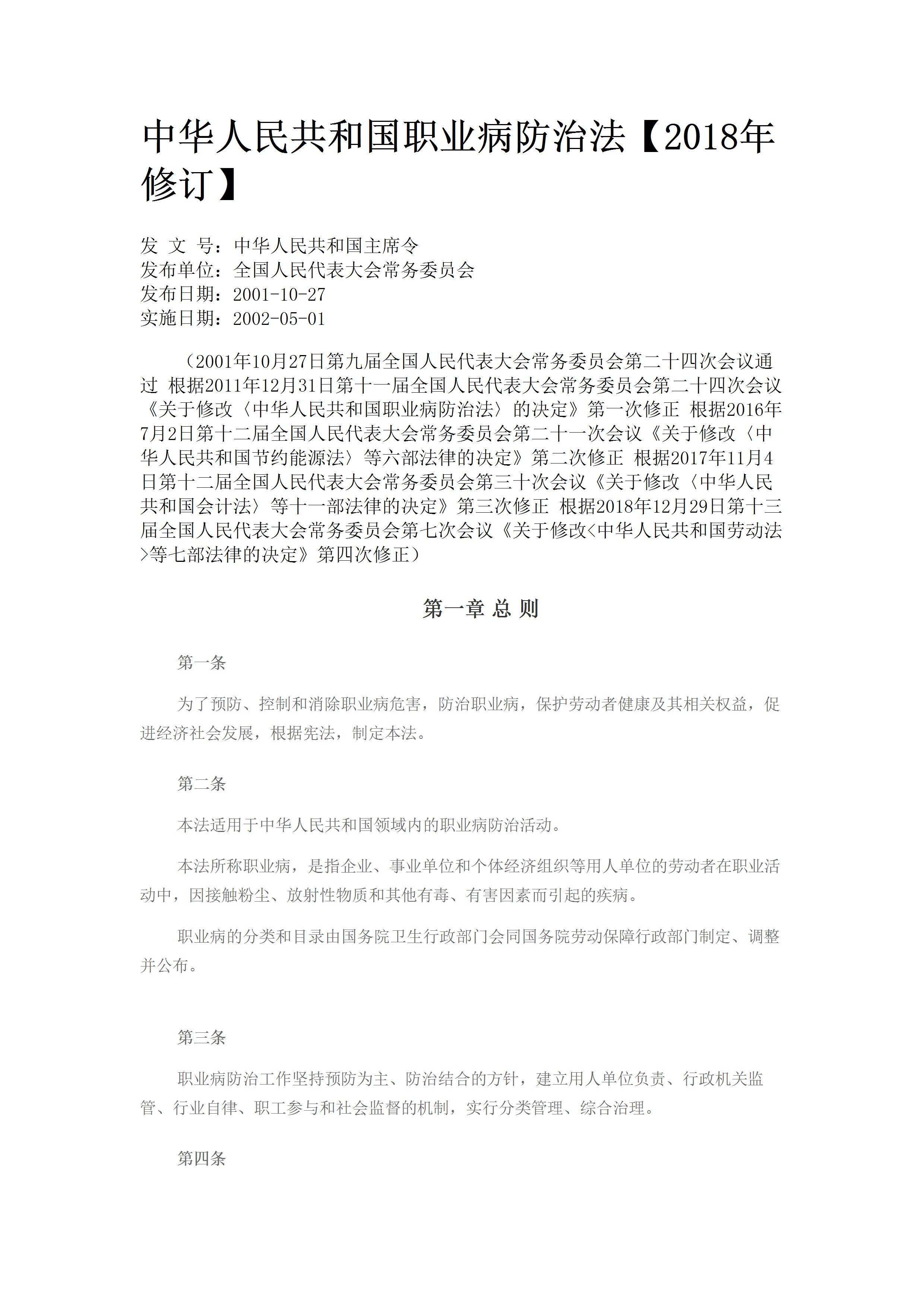 / 中华人民共和国职业病防治法2019年修订[文档]