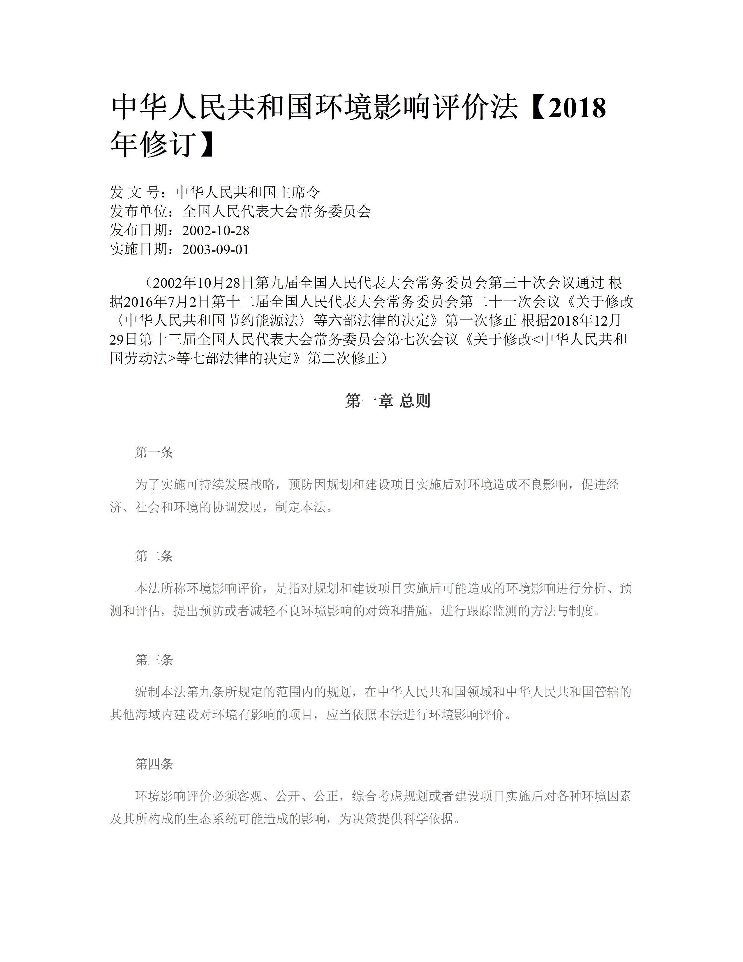 / 中华人民共和国环境影响评价法2018年修订[文档]