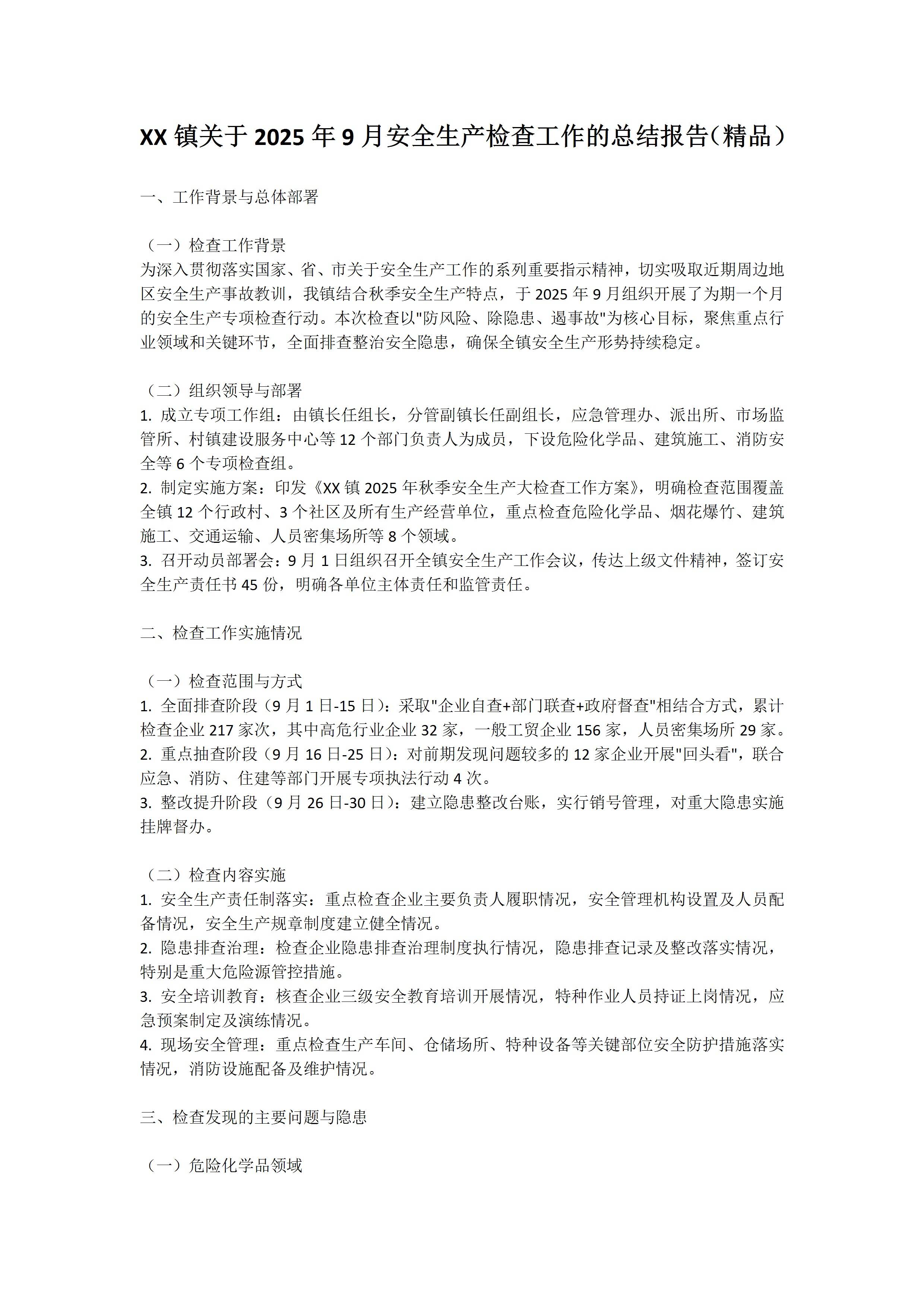 / 镇关于2025年9月安全生产检查工作的总结报告模板文档