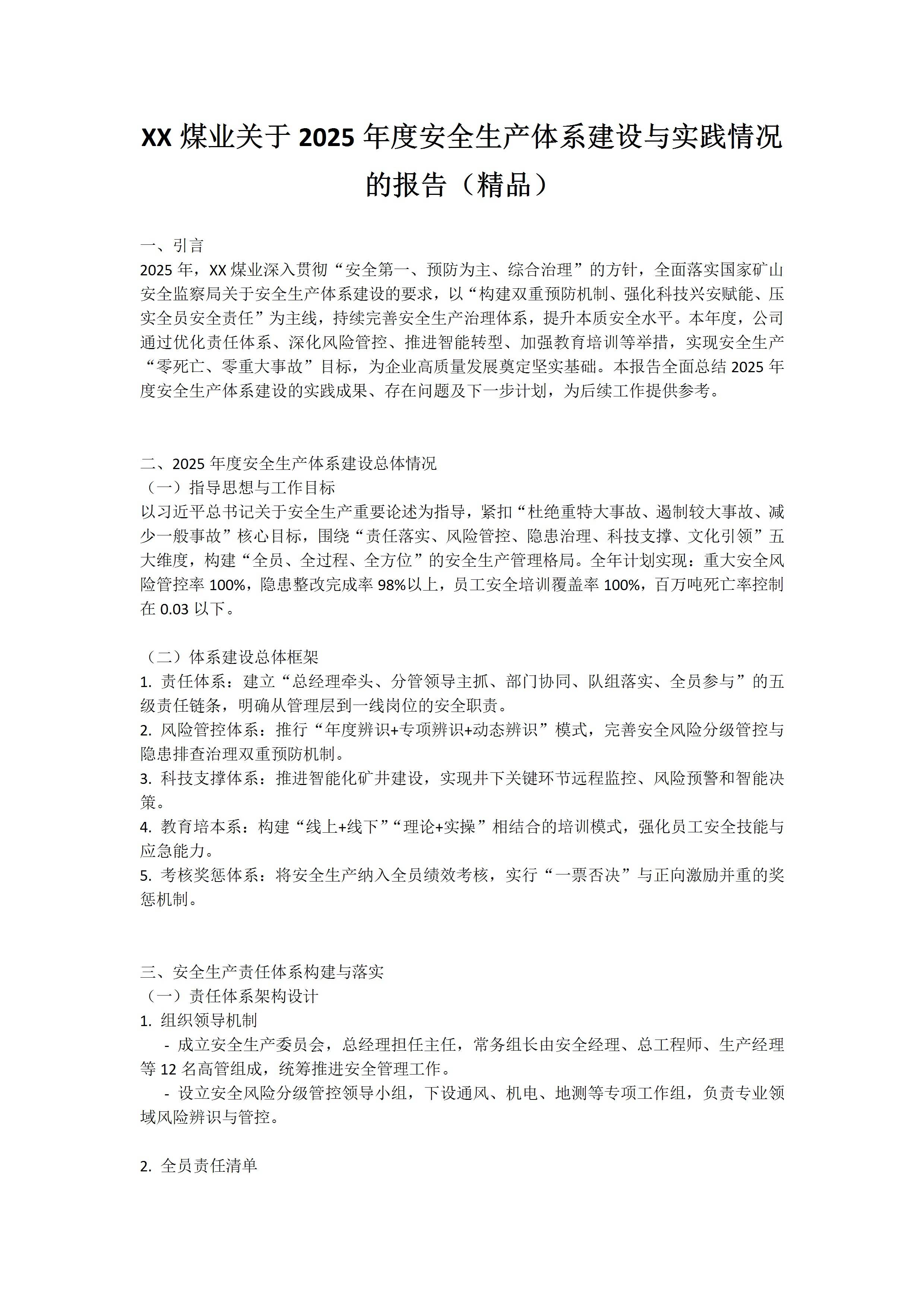 / 煤业关于2025年度安全生产体系建设与实践情况的报告模板文档