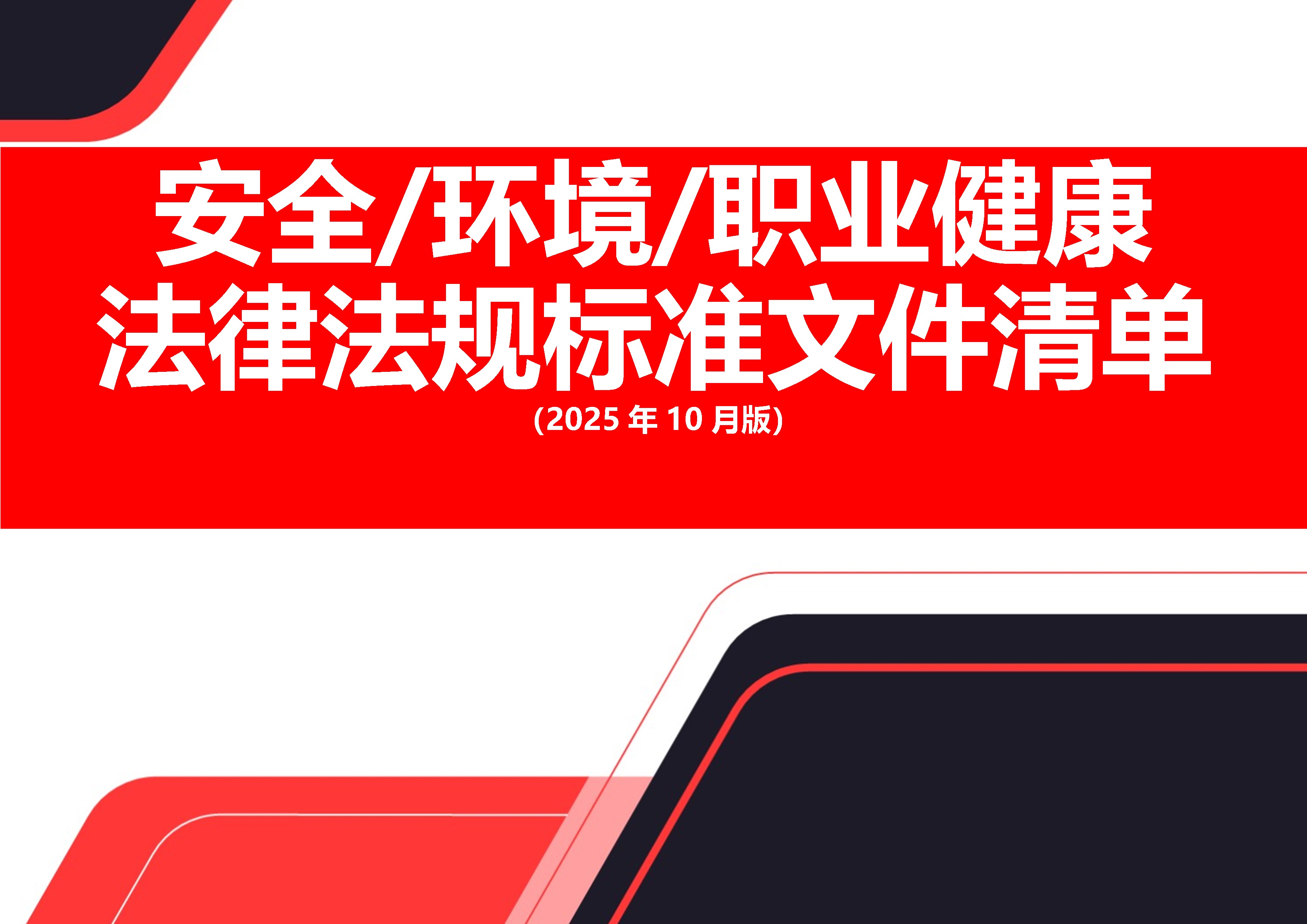 2025年10月版安全环境职业健康法律法规标准文件清单150页 文档25.10.12