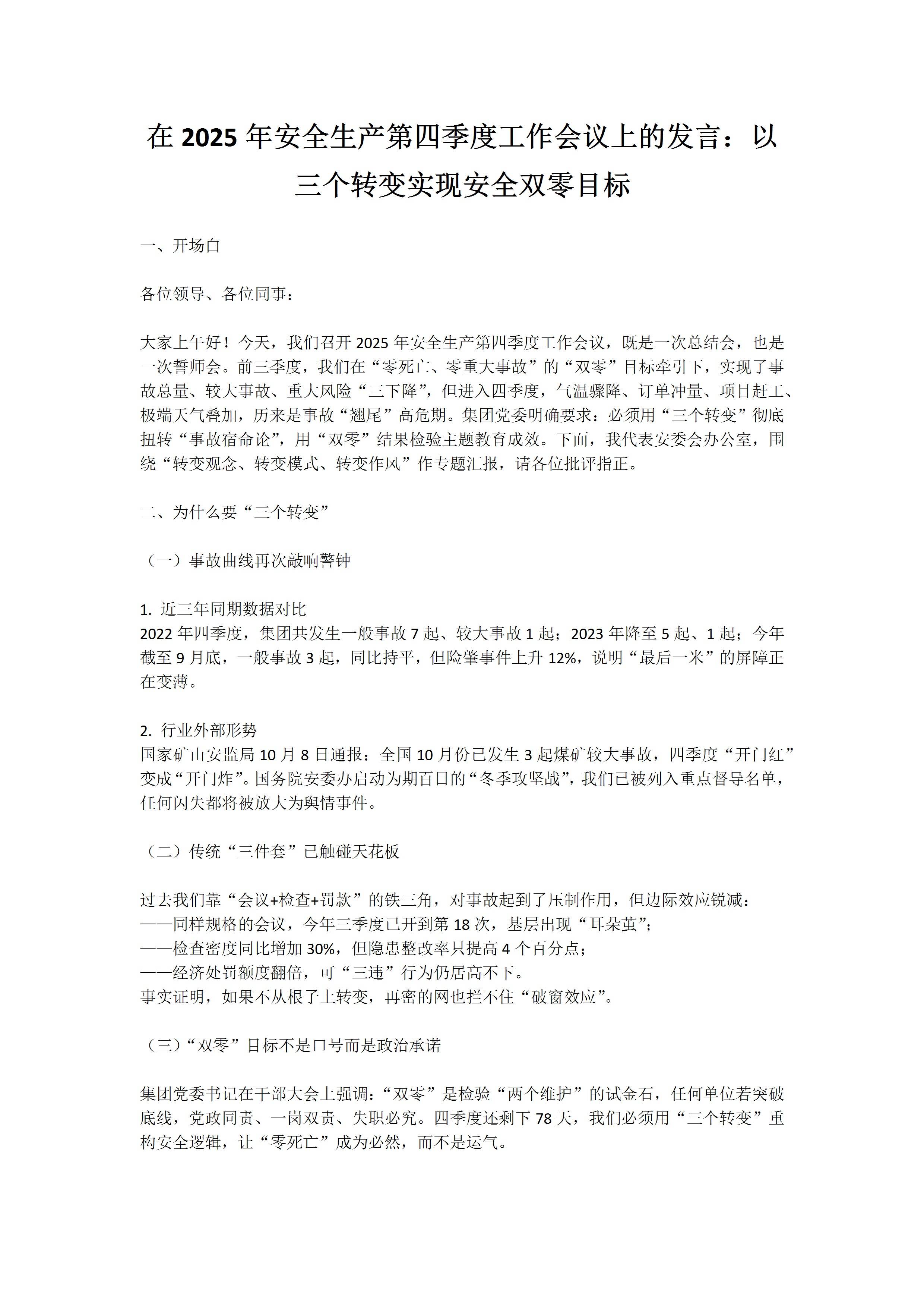 在2025年安全生产第四季度工作会议上的发言以三个转变实现安全双零目标 文档25.10.13
