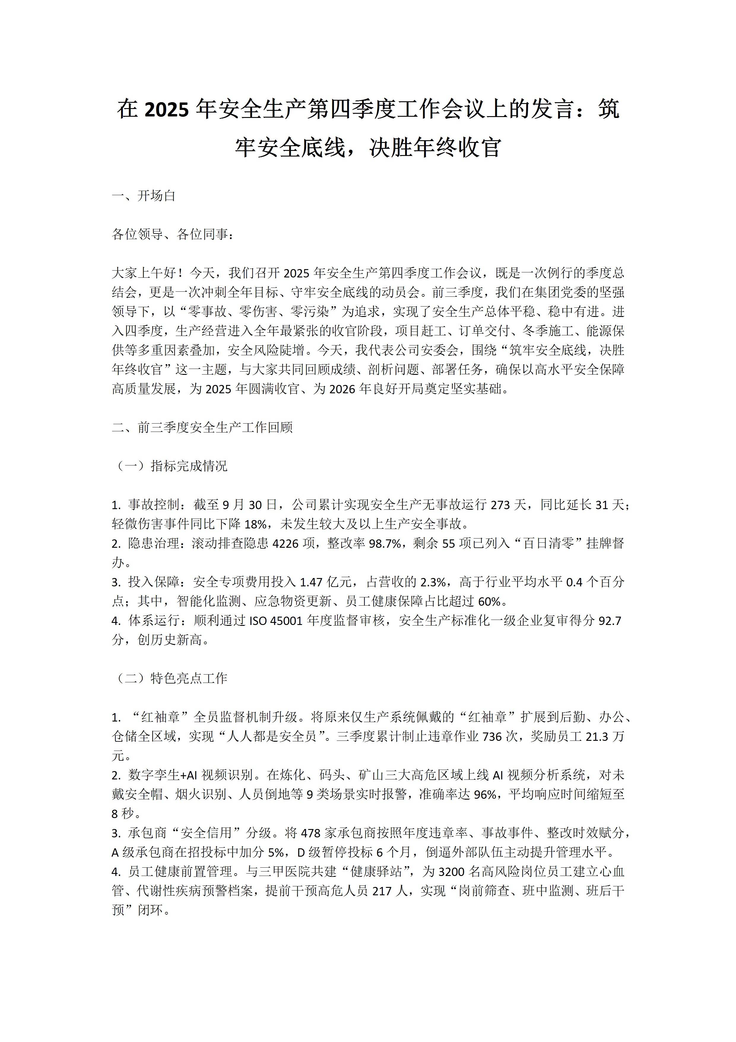 在2025年安全生产第四季度工作会议上的发言筑牢安全底线,决胜年终收官 文档25.10.13