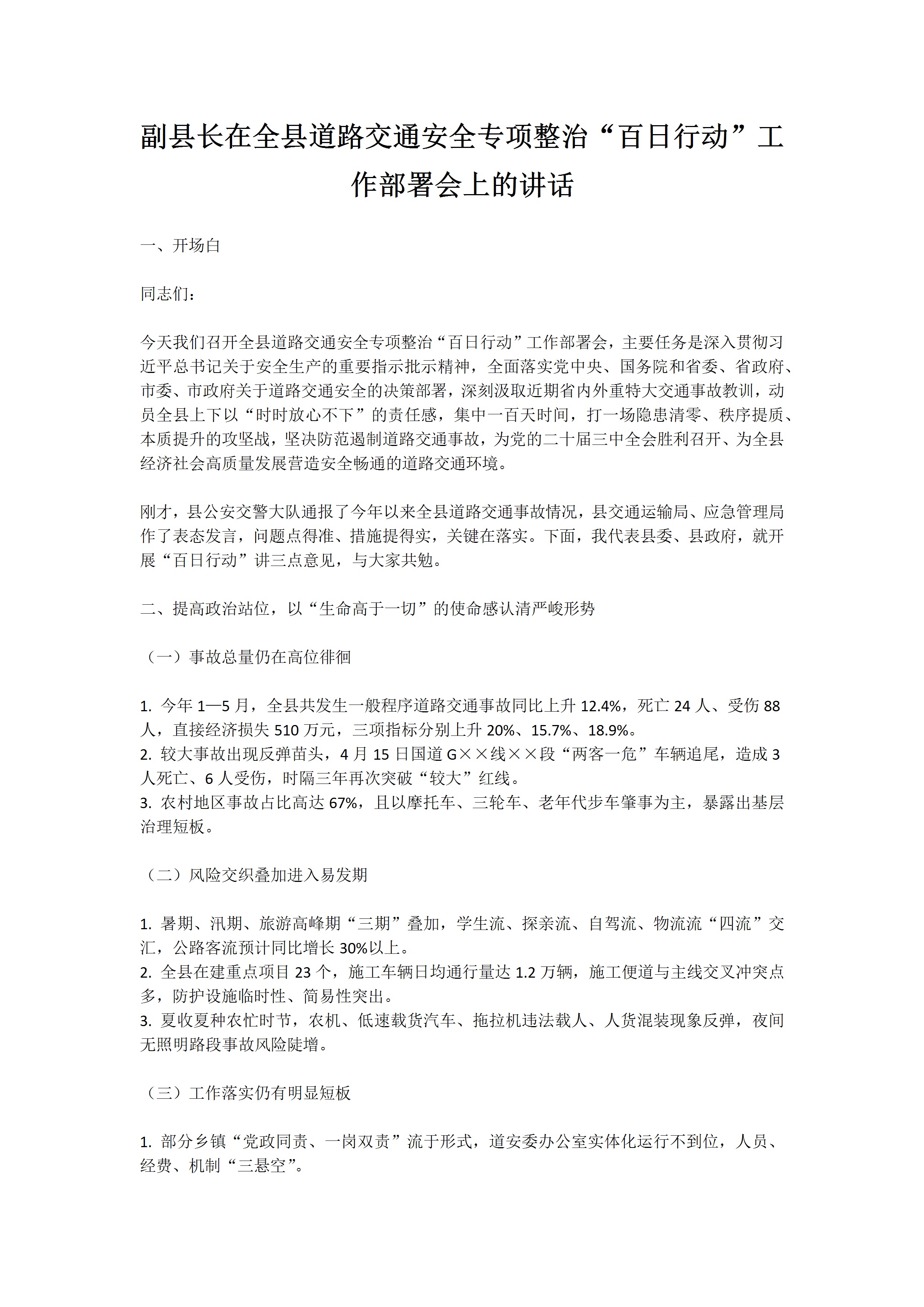 副县长在全县道路交通安全专项整治百日行动工作部署会上的讲话 文档25.10.15