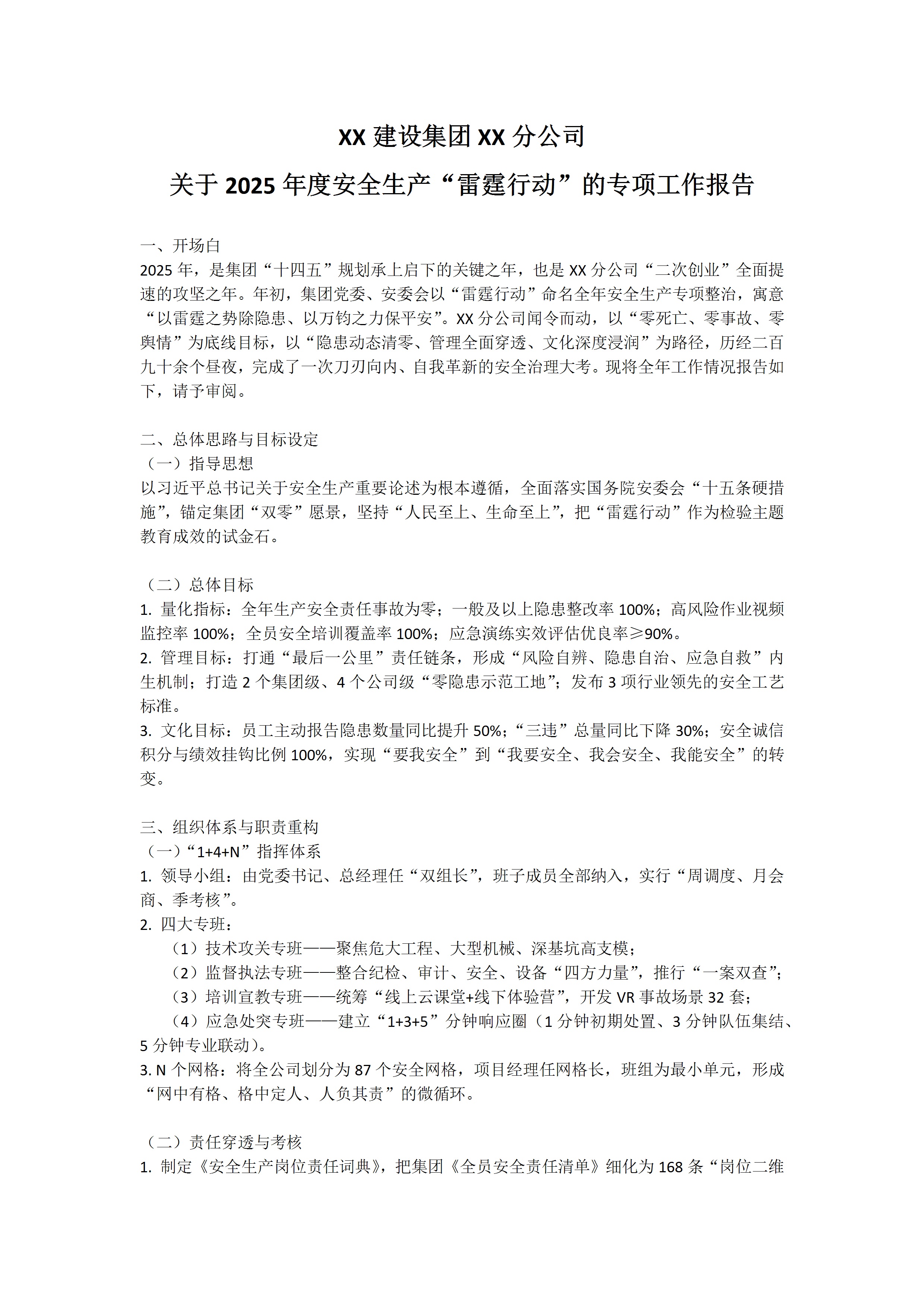 XX建设集团XX分公司关于2025年度安全生产雷霆行动的专项工作报告 文档25.10.15
