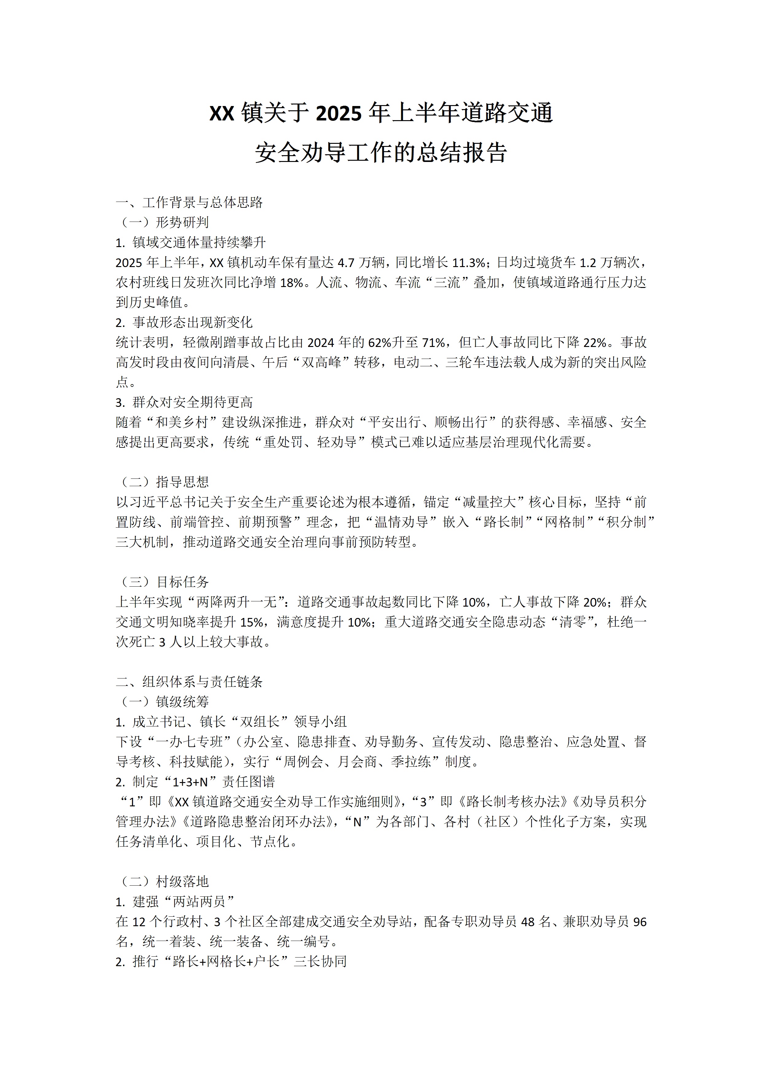 XX镇关于2025年上半年道路交通安全劝导工作的总结报告 文档25.10.15