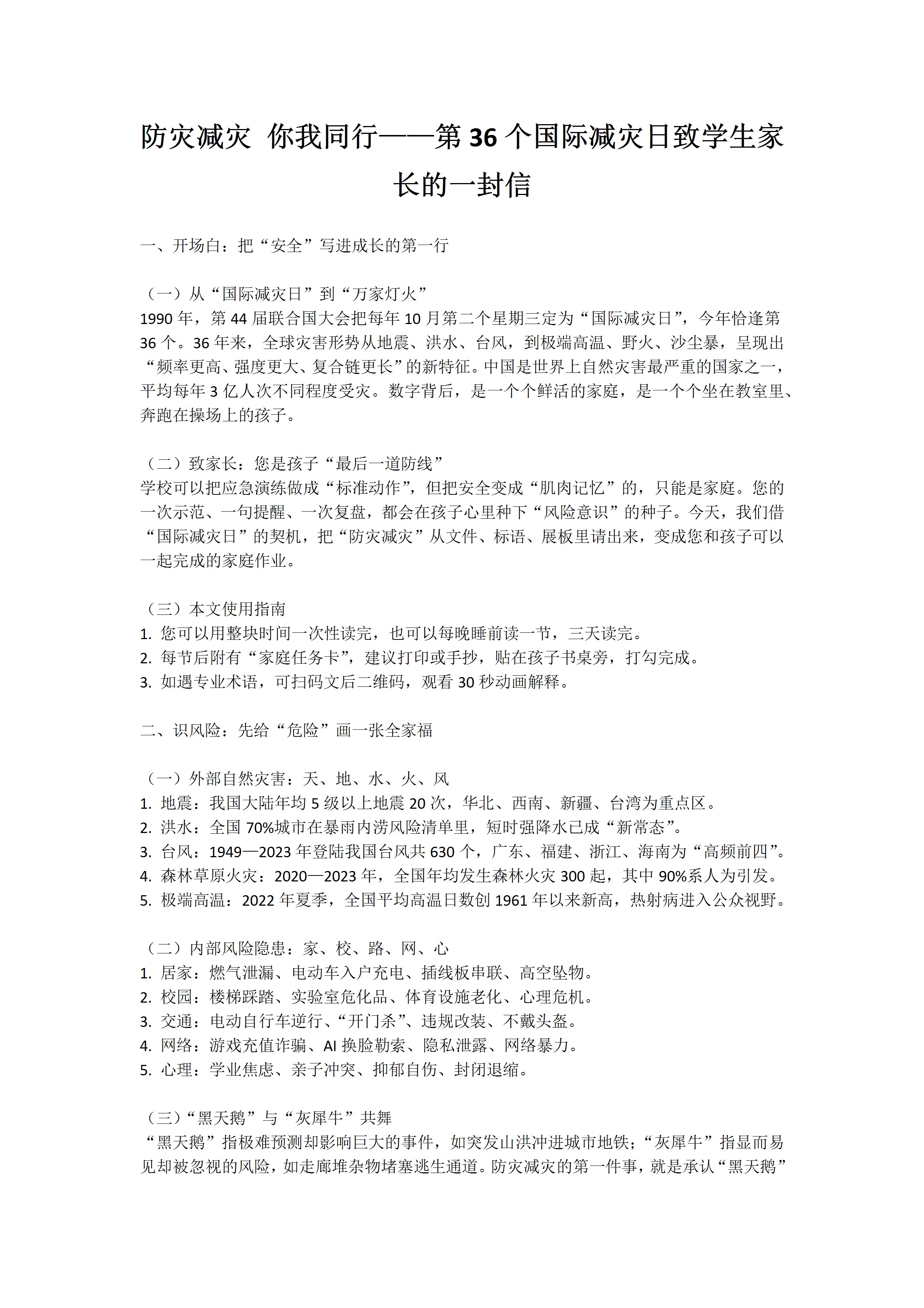 防灾减灾 你我同行第36个国际减灾日致学生家长的一封信 文档25.10.14
