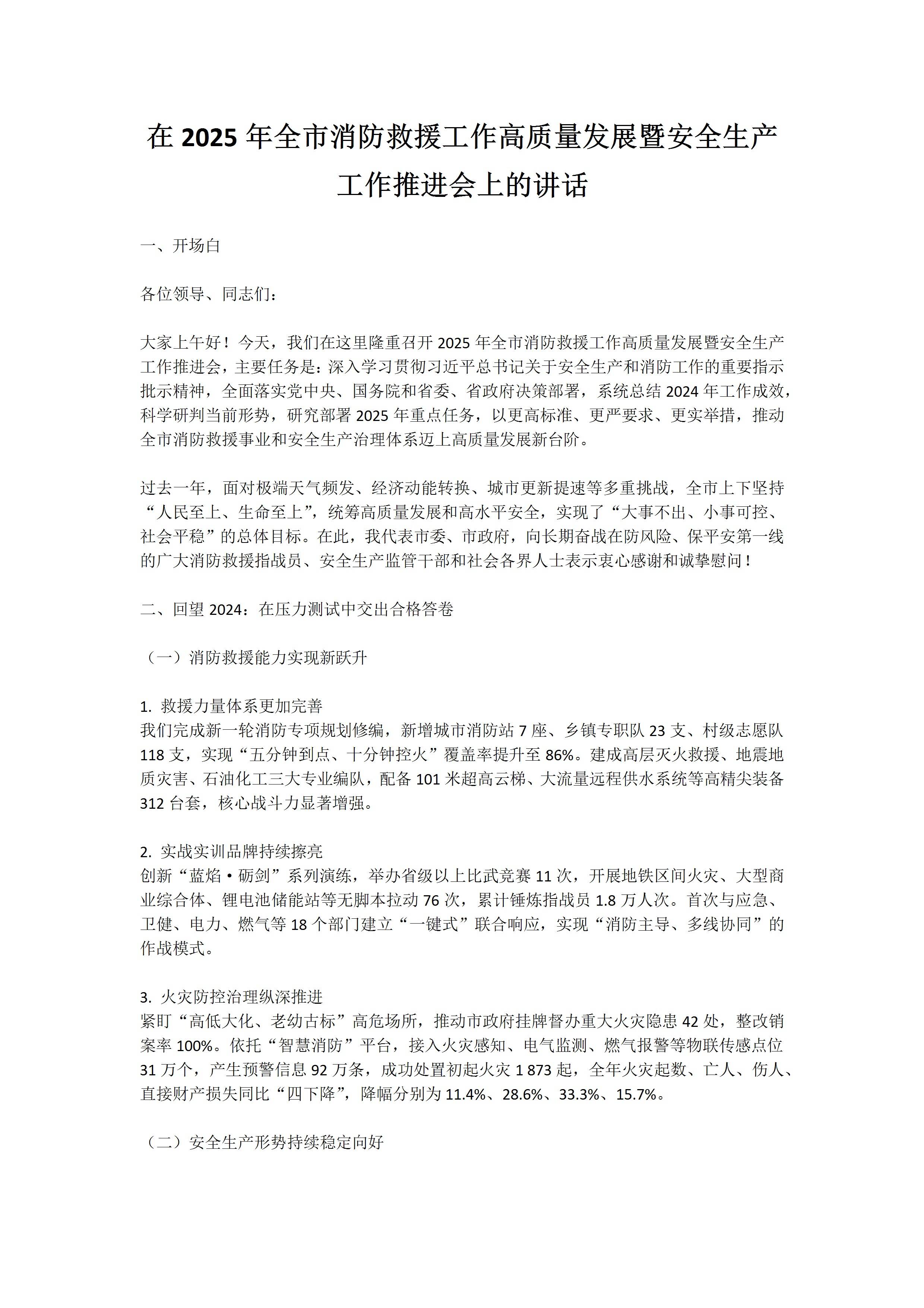 在2025年全市消防救援工作高质量发展暨安全生产工作推进会上的讲话 文档25.10.16