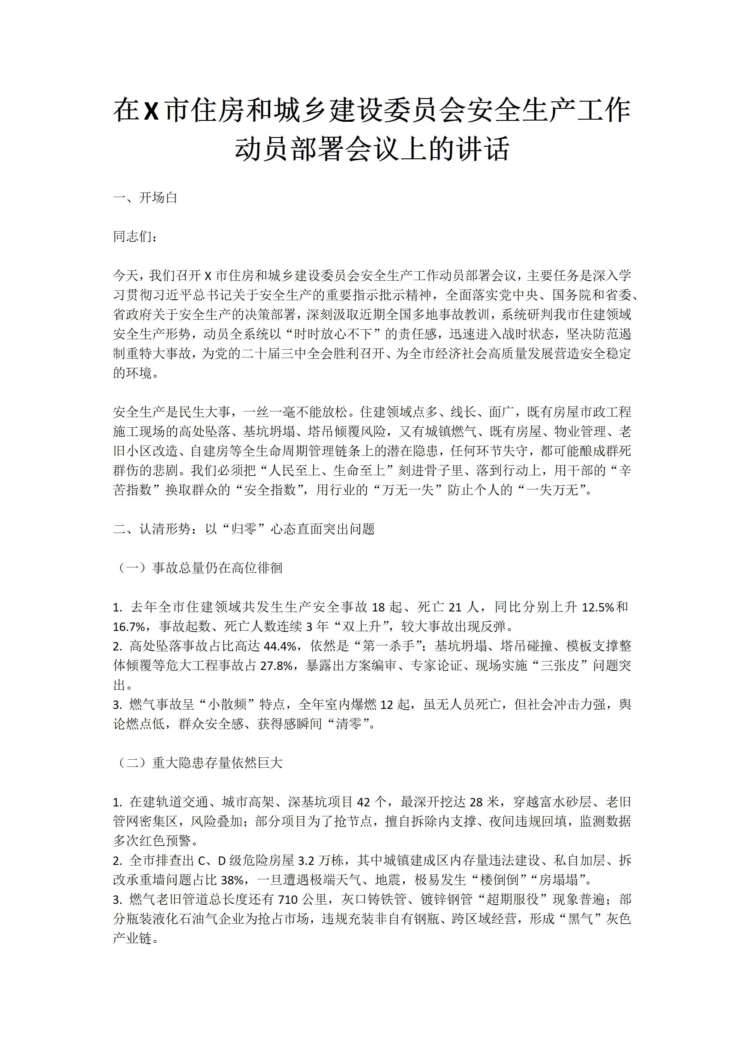 在X市住房和城乡建设委员会安全生产工作动员部署会议上的讲话 文档25.10.17
