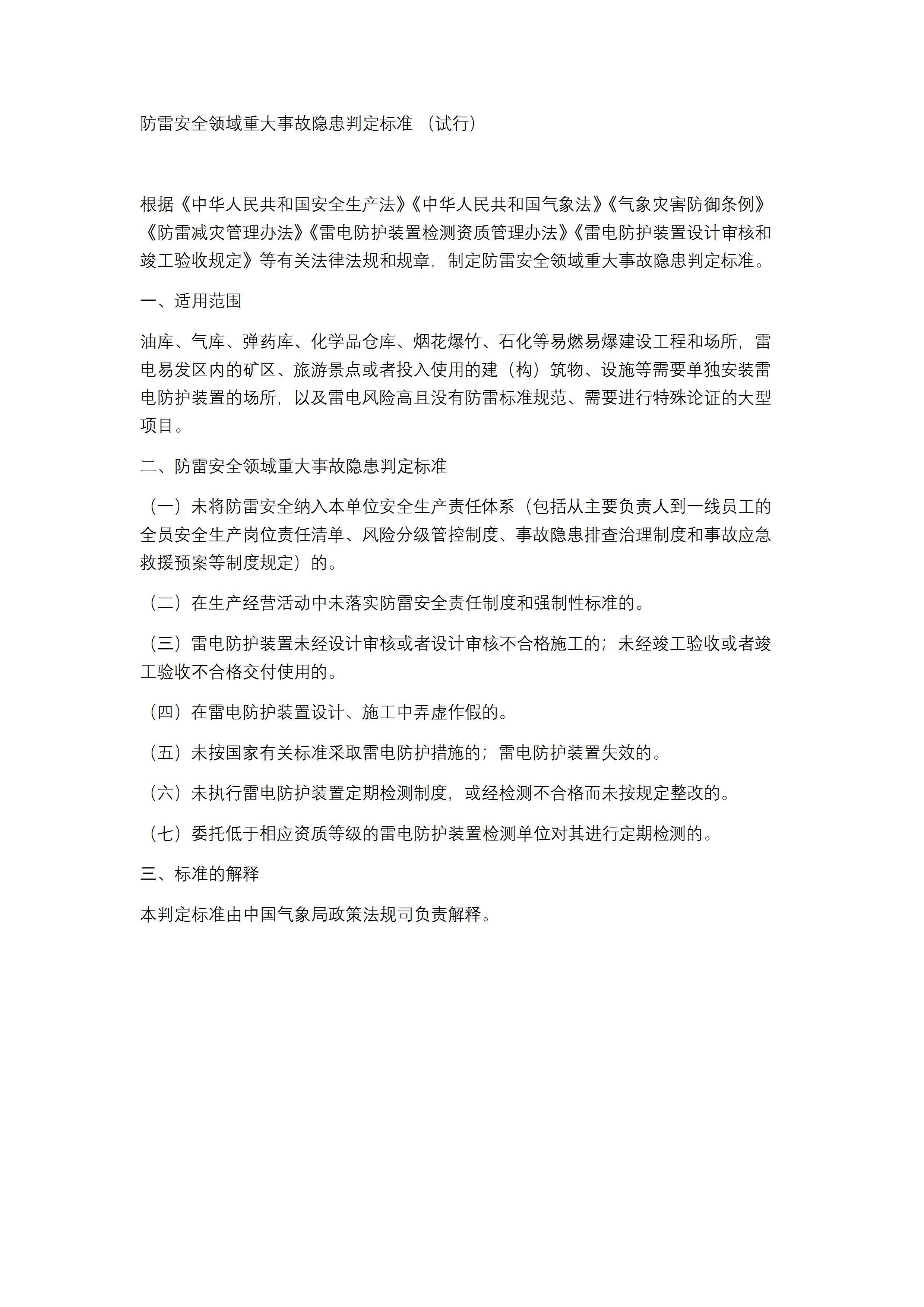 / 防雷安全领域重大事故隐患判定标准 试行[文档]