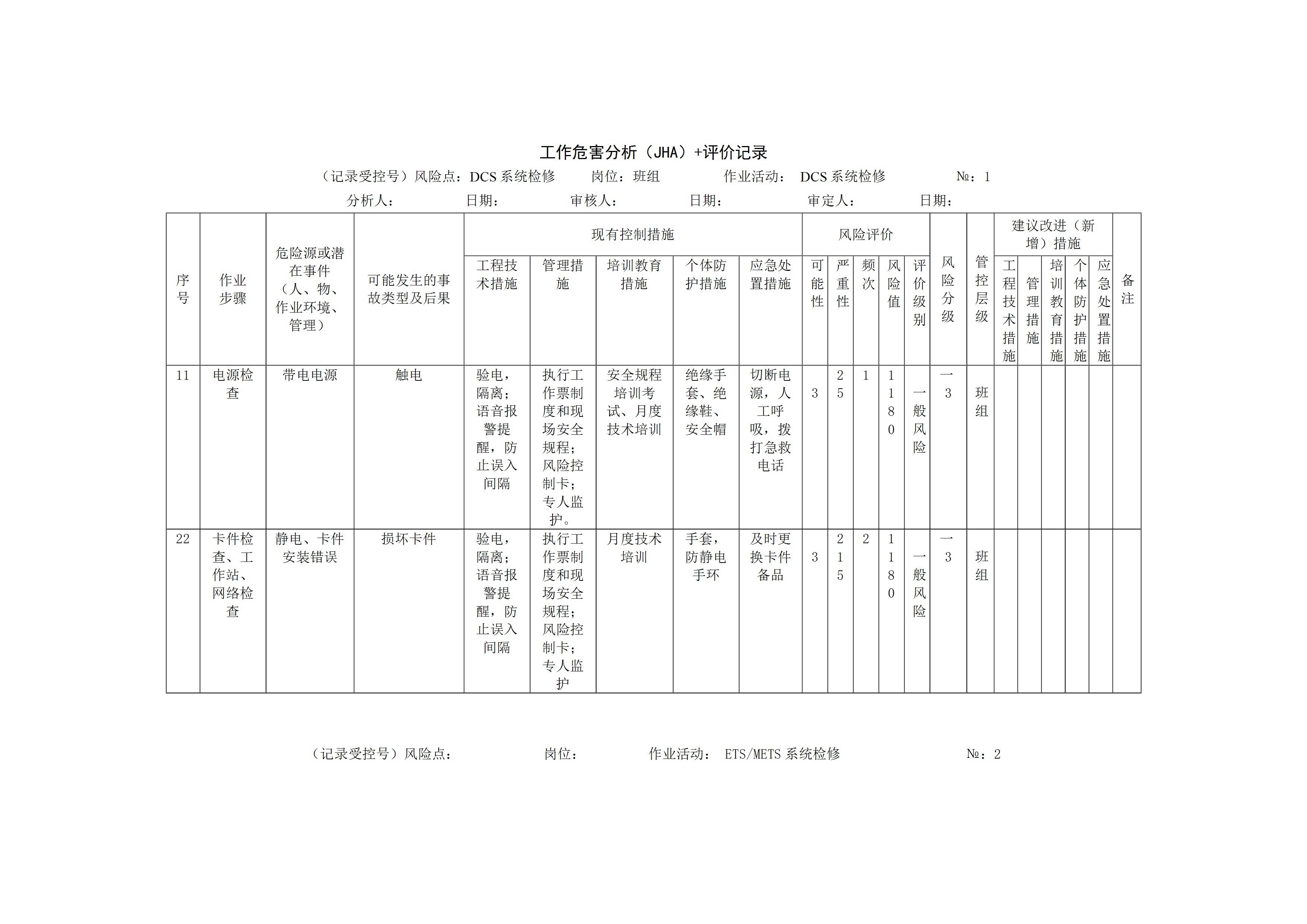 风险分析记录工作危害分析JHA评价记录(热工车间)[文档]