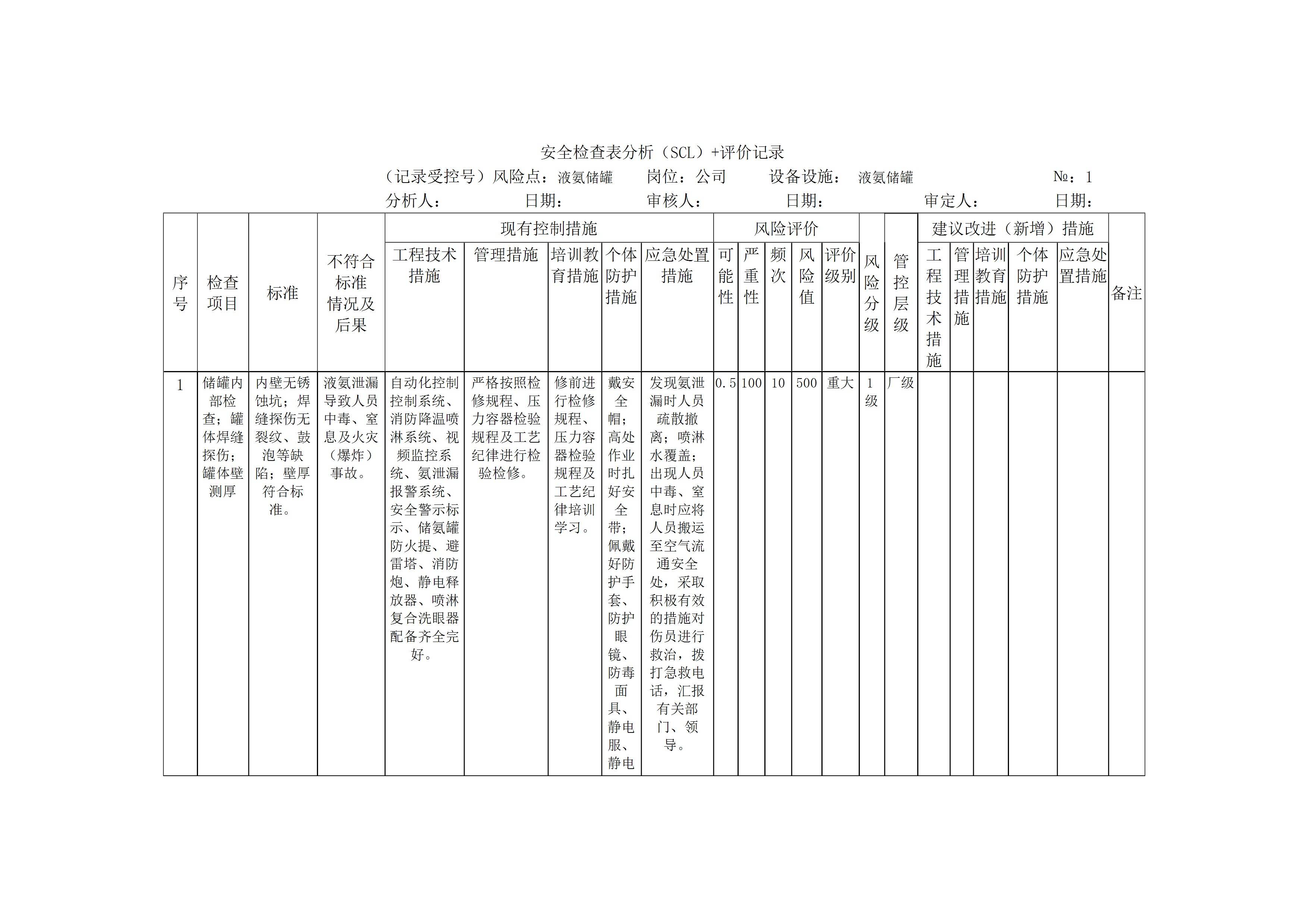 风险分析记录安全分析检查表(化学车间)[文档]