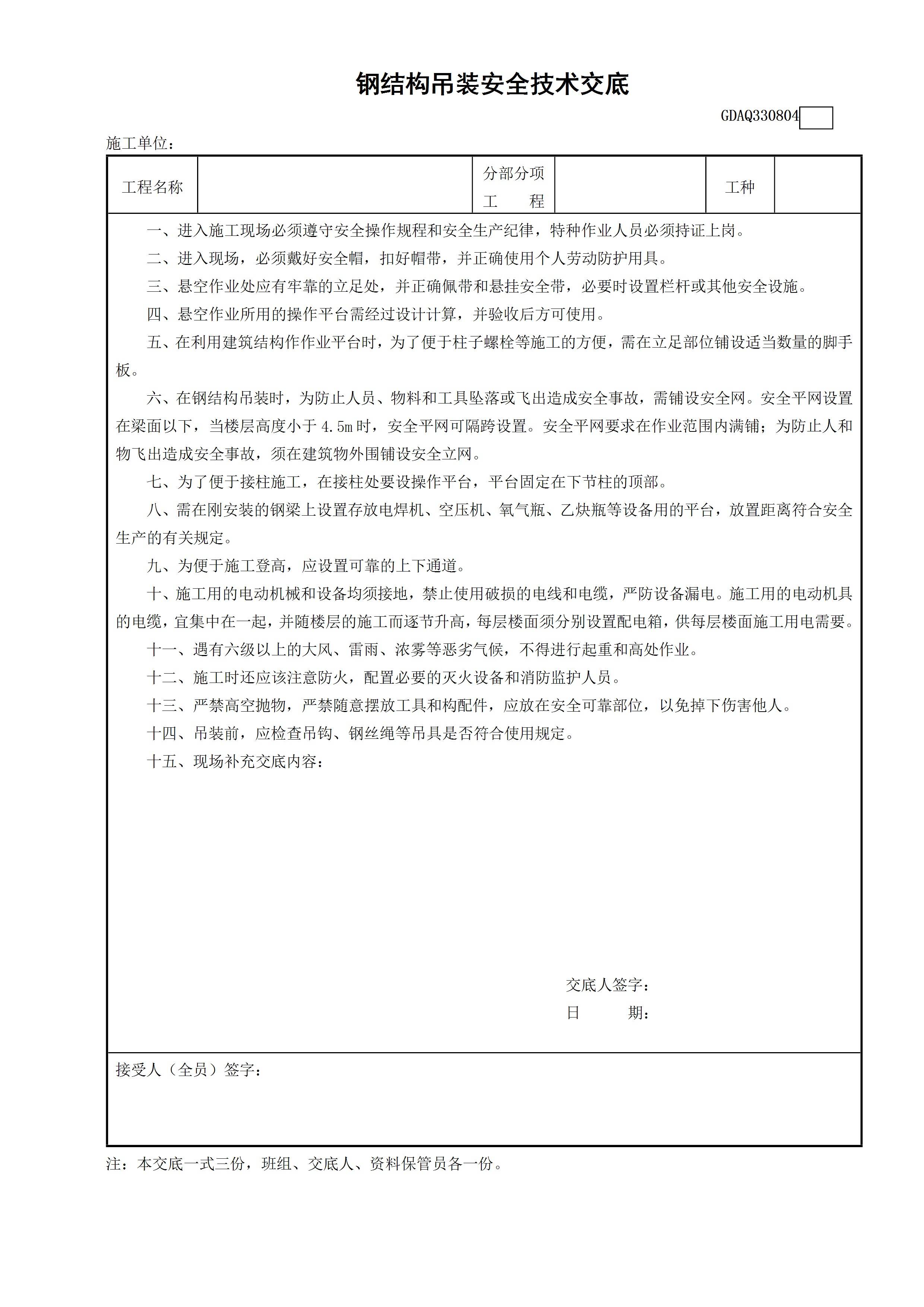 钢结构吊装安全技术交底GDAQ330804[文档]
