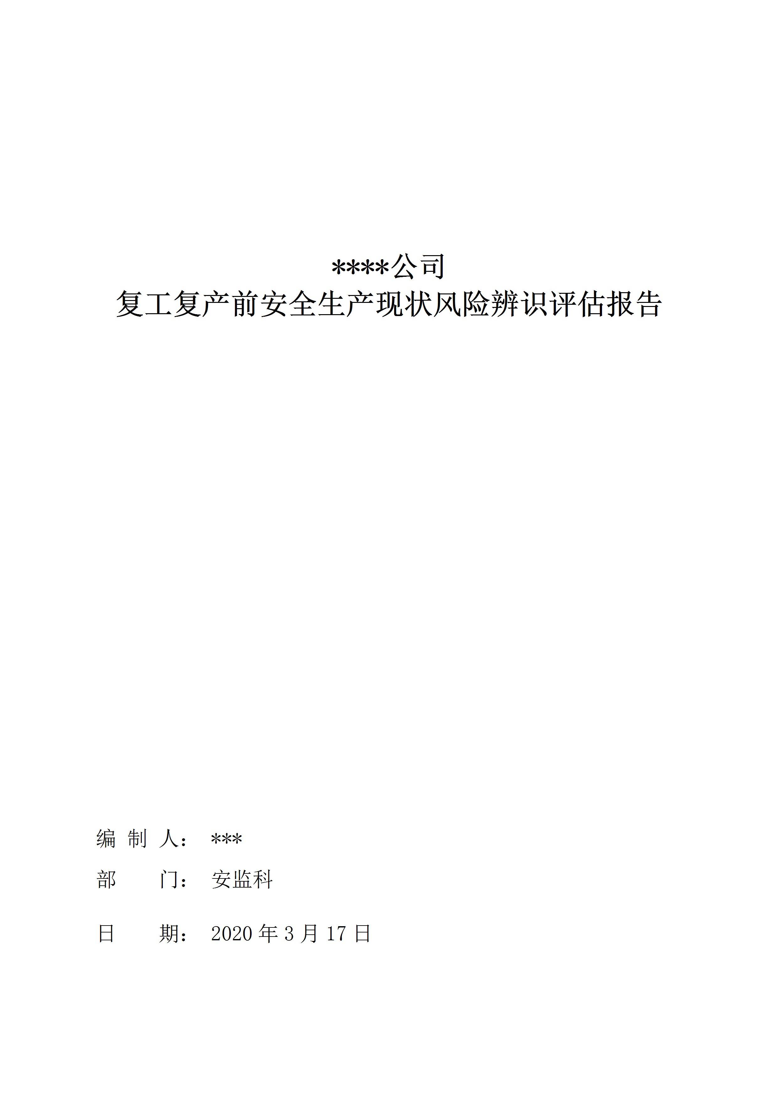 / 复工复产前安全生产现状风险辨识评估报告(15页)[文档]