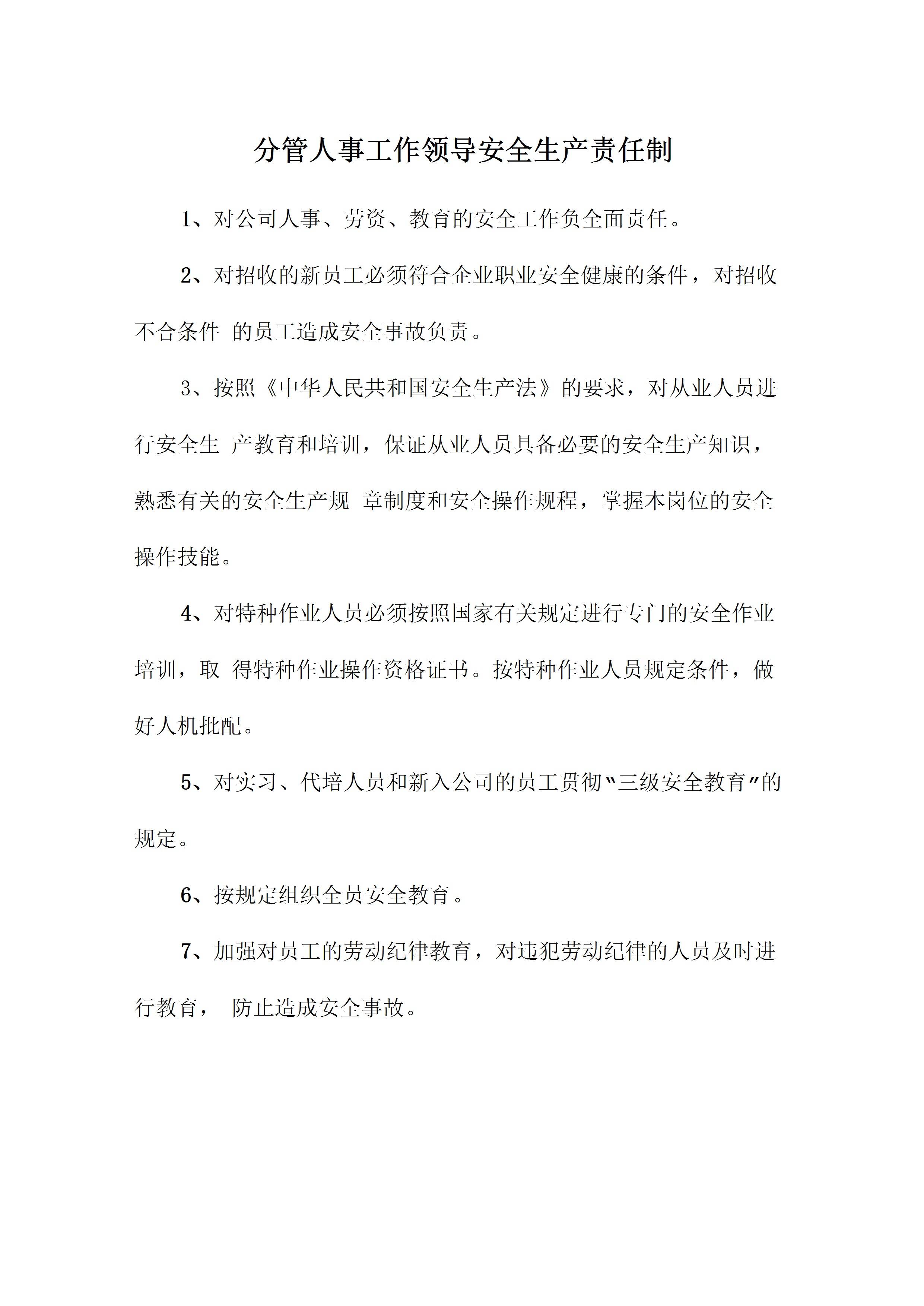 / 分管人事工作领导安全生产责任制[文档]
