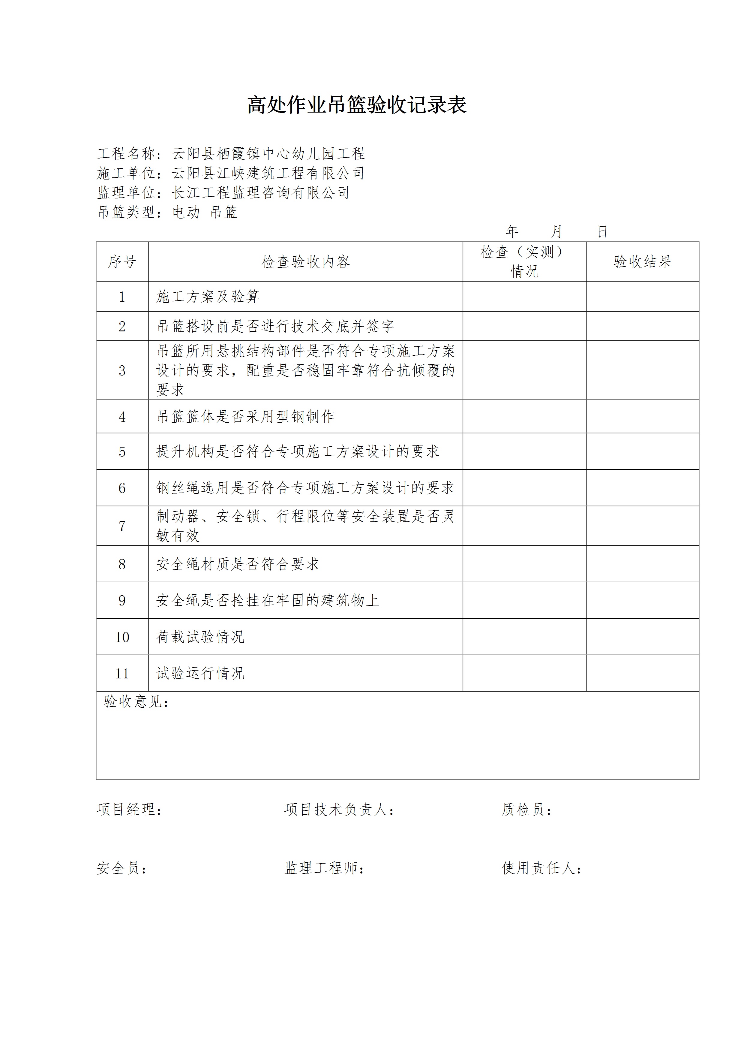 / 高处作业吊篮验收记录表[文档]