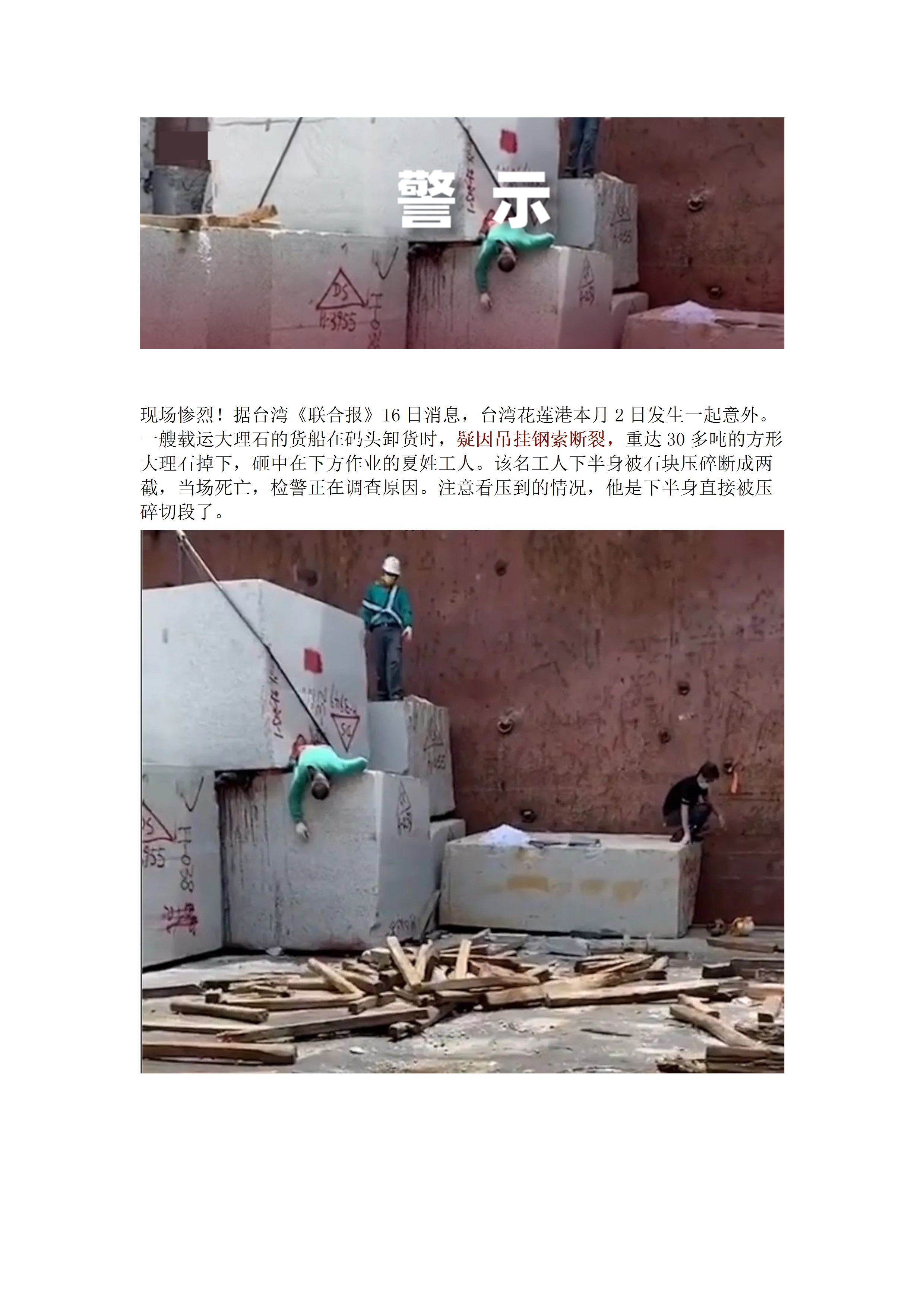 / 钢丝绳断裂 工人当场被压身亡 监拍7月2日事故 现场惨烈[文档]