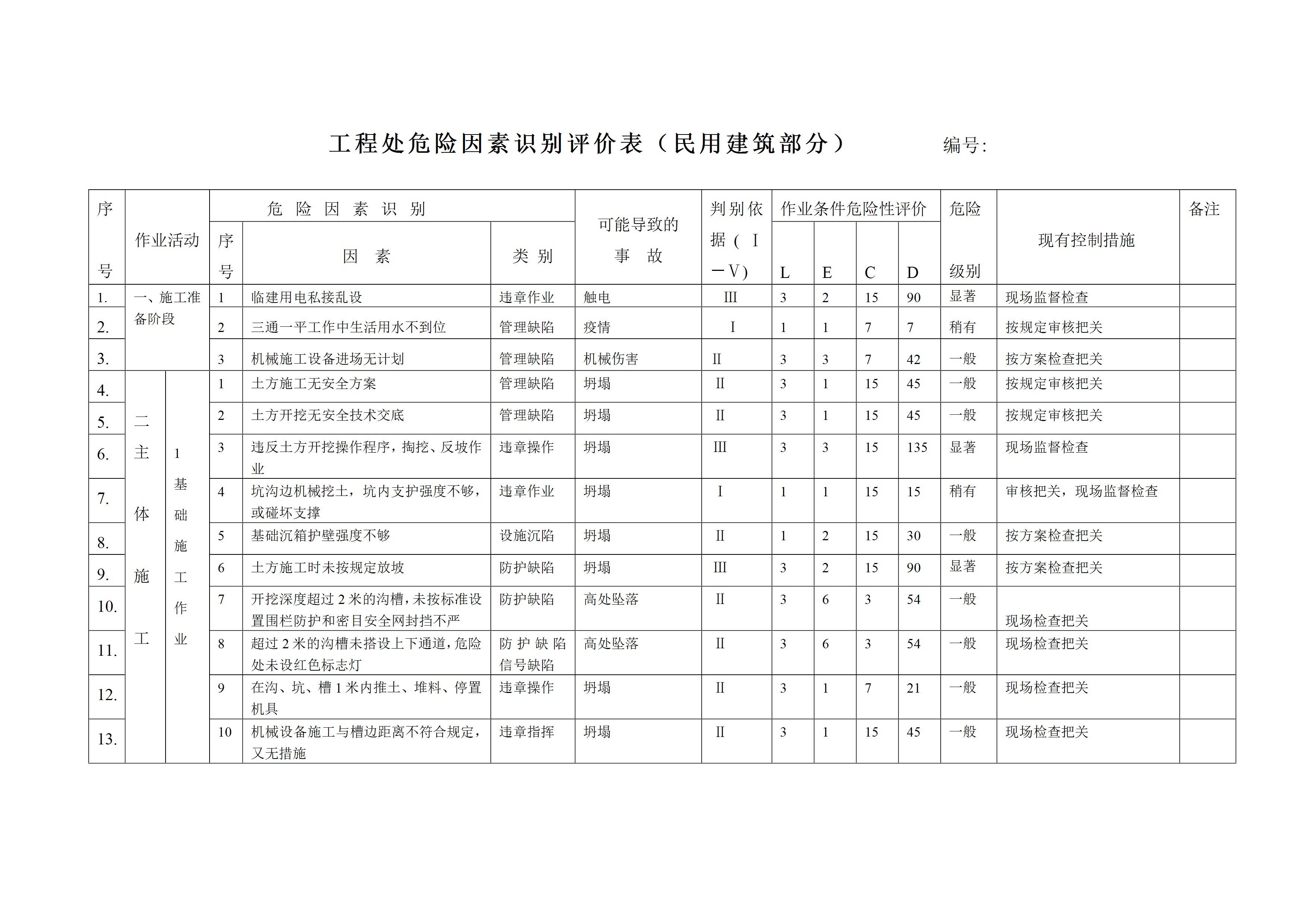 / 工程危险因素识别评价表民用建筑部分[文档]