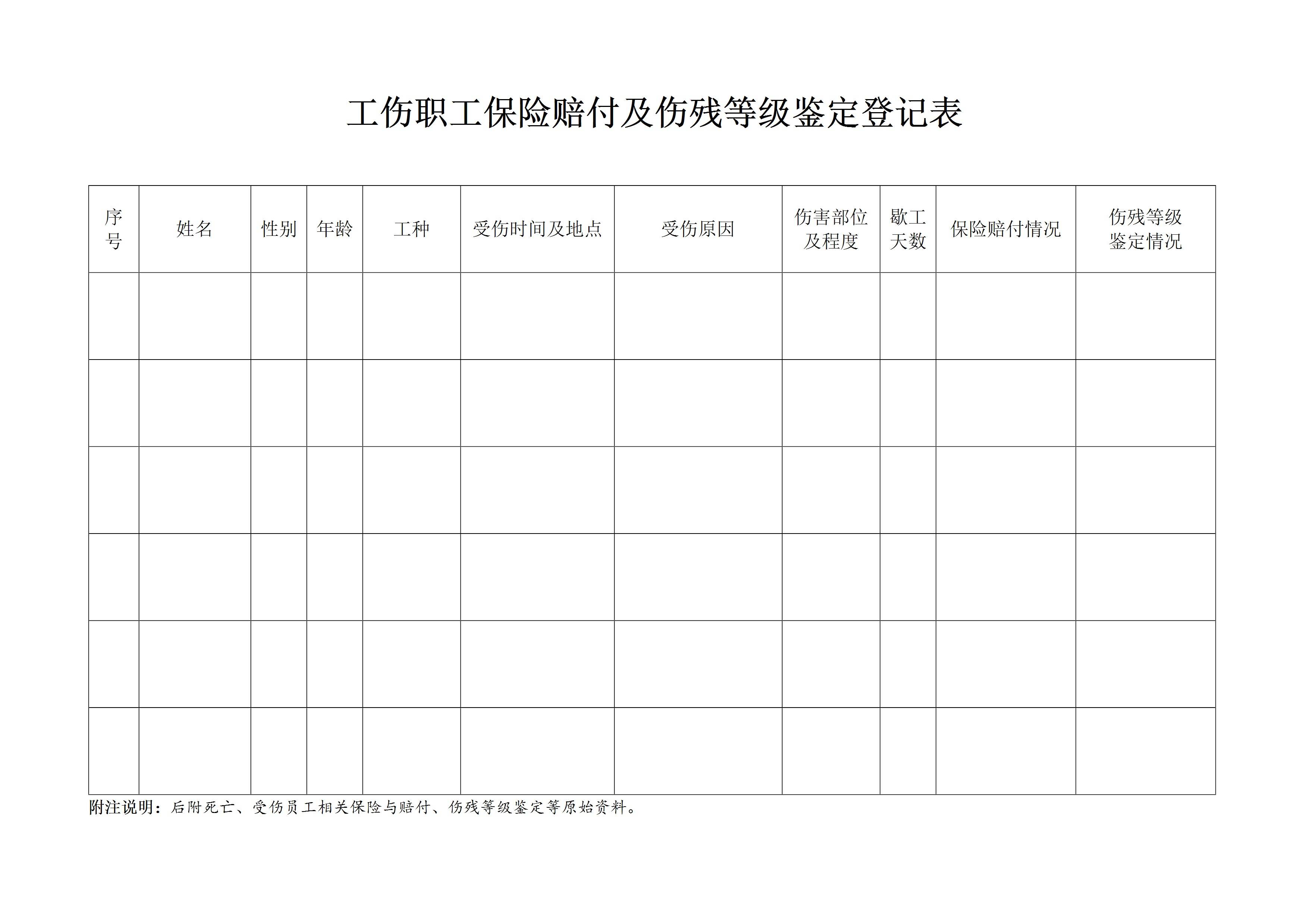 工伤职工保险赔付及伤残等级鉴定登记表[文档]