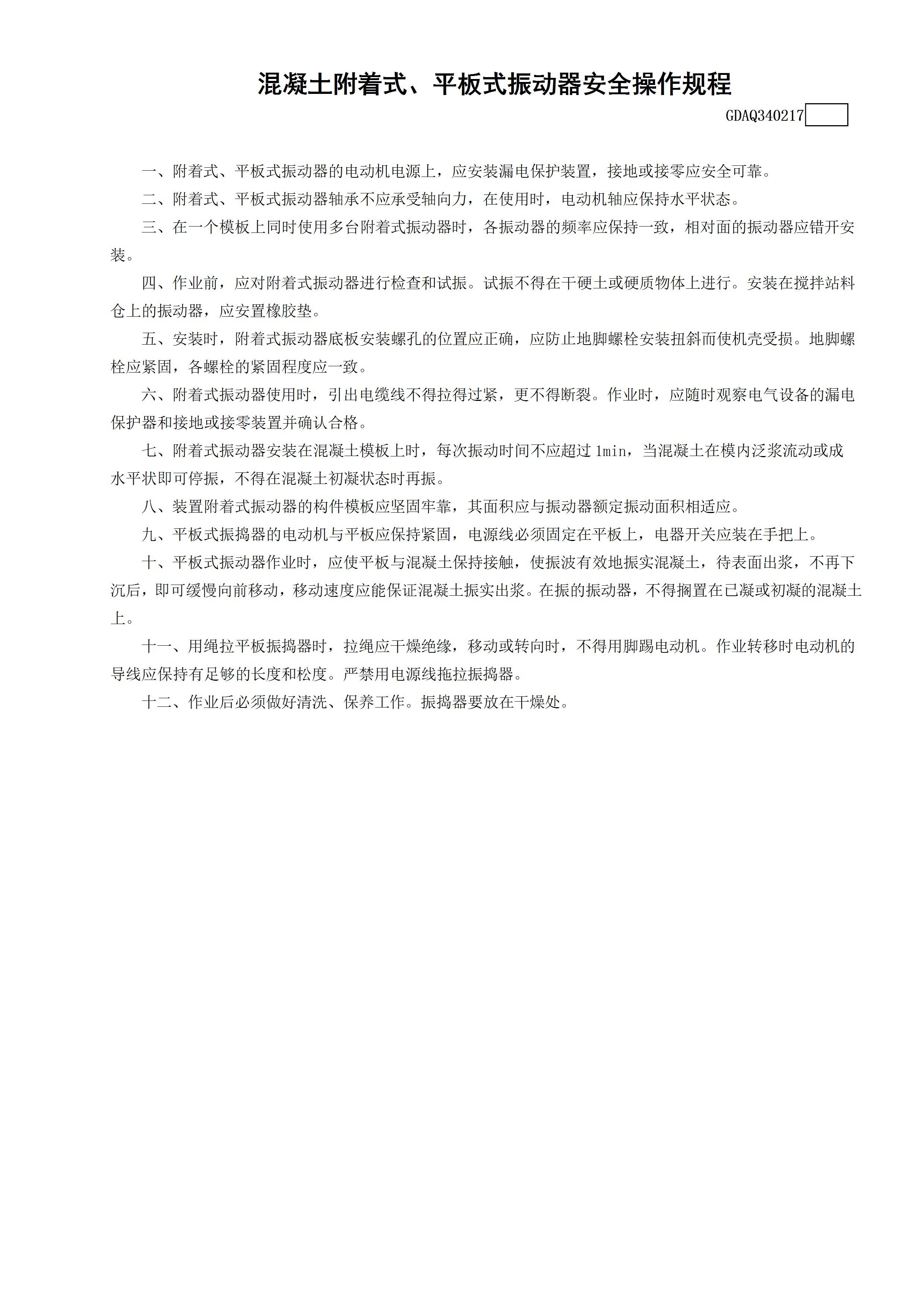 / 混凝土附着式,平板式振动器安全操作规程GDAQ340217