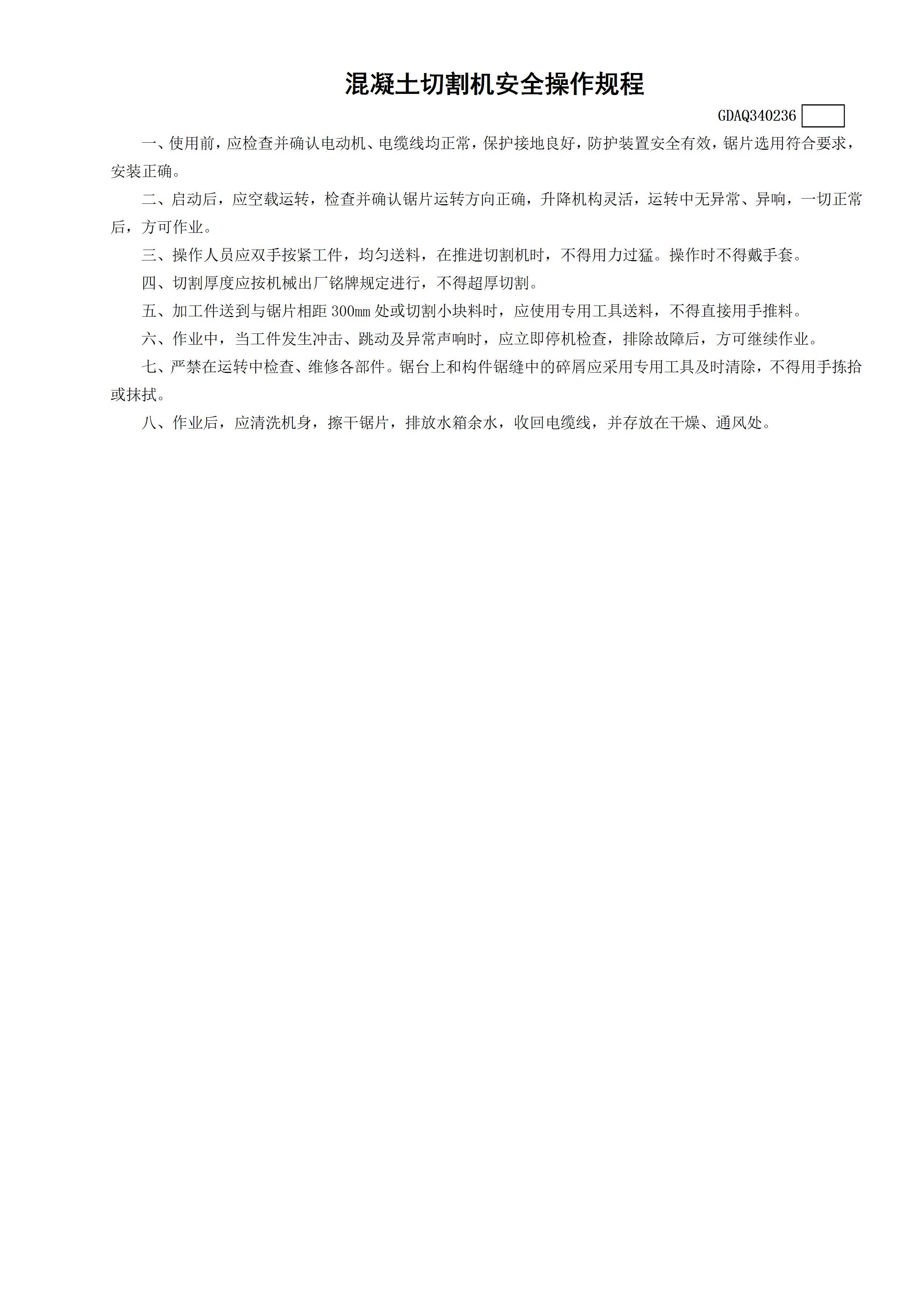 / 混凝土切割机安全操作规程GDAQ340236
