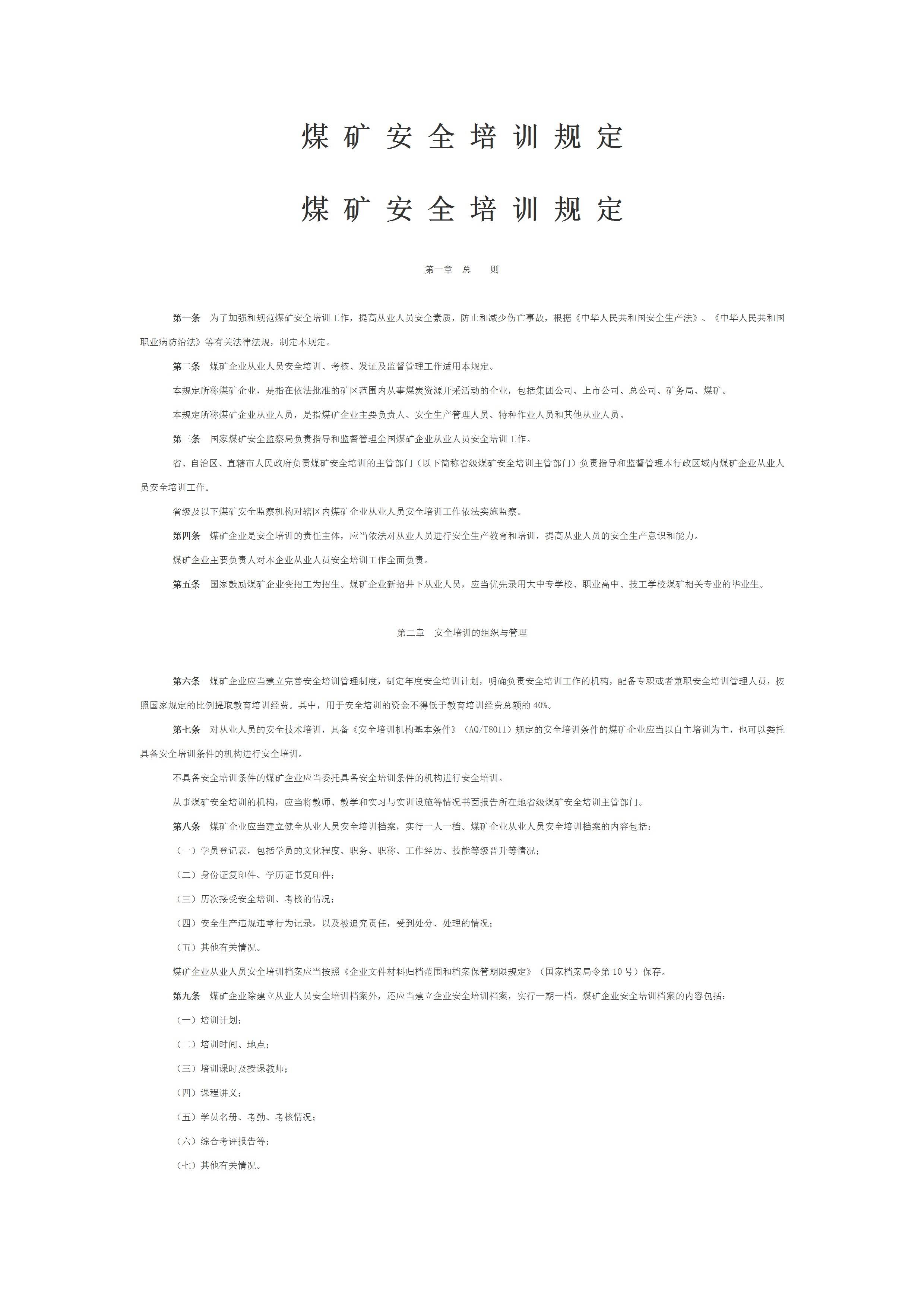 / 国家安监总局令[2018]第92号煤矿安全培训规定