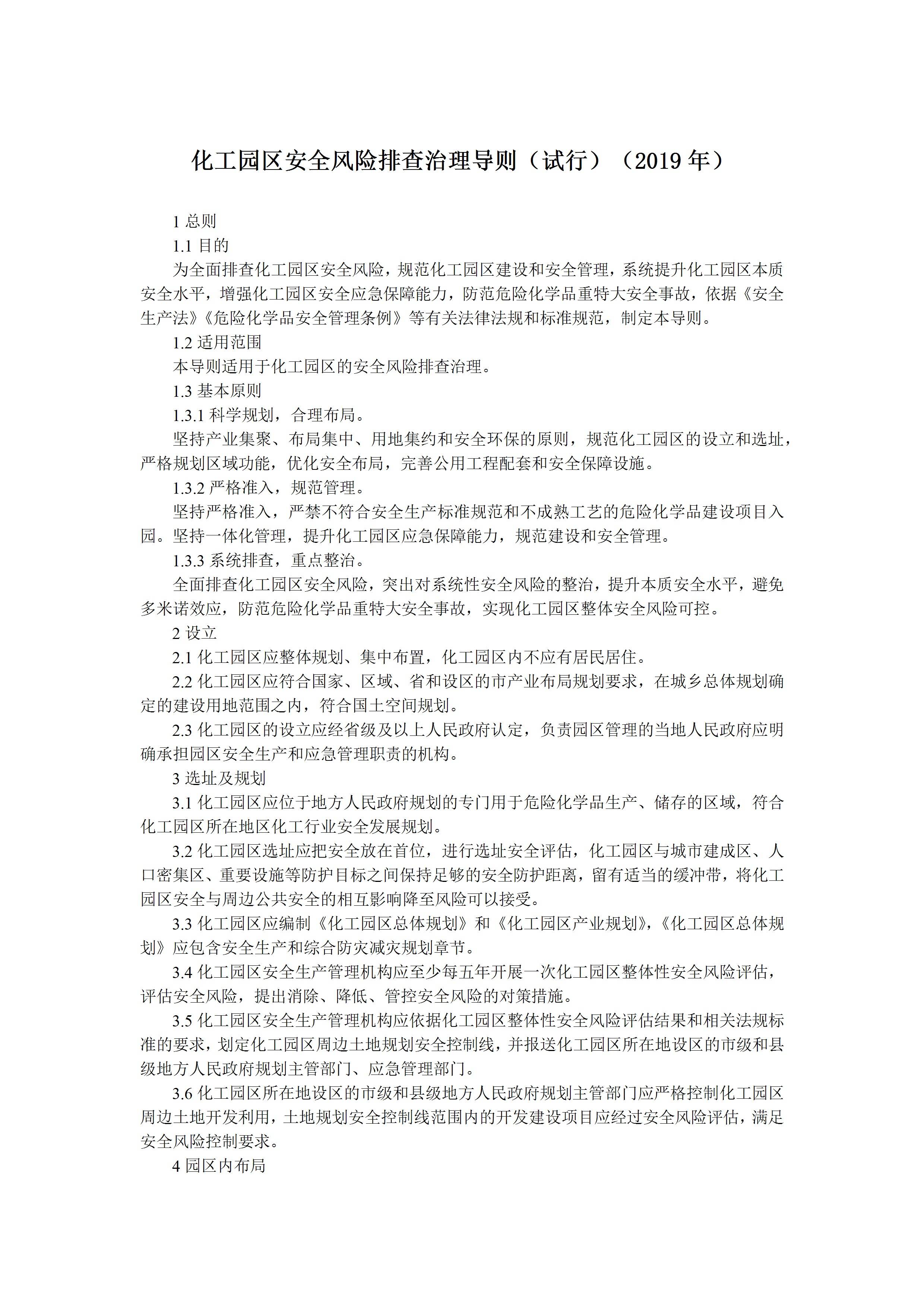 / 化工园区安全风险排查治理导则(试行)(2019年)