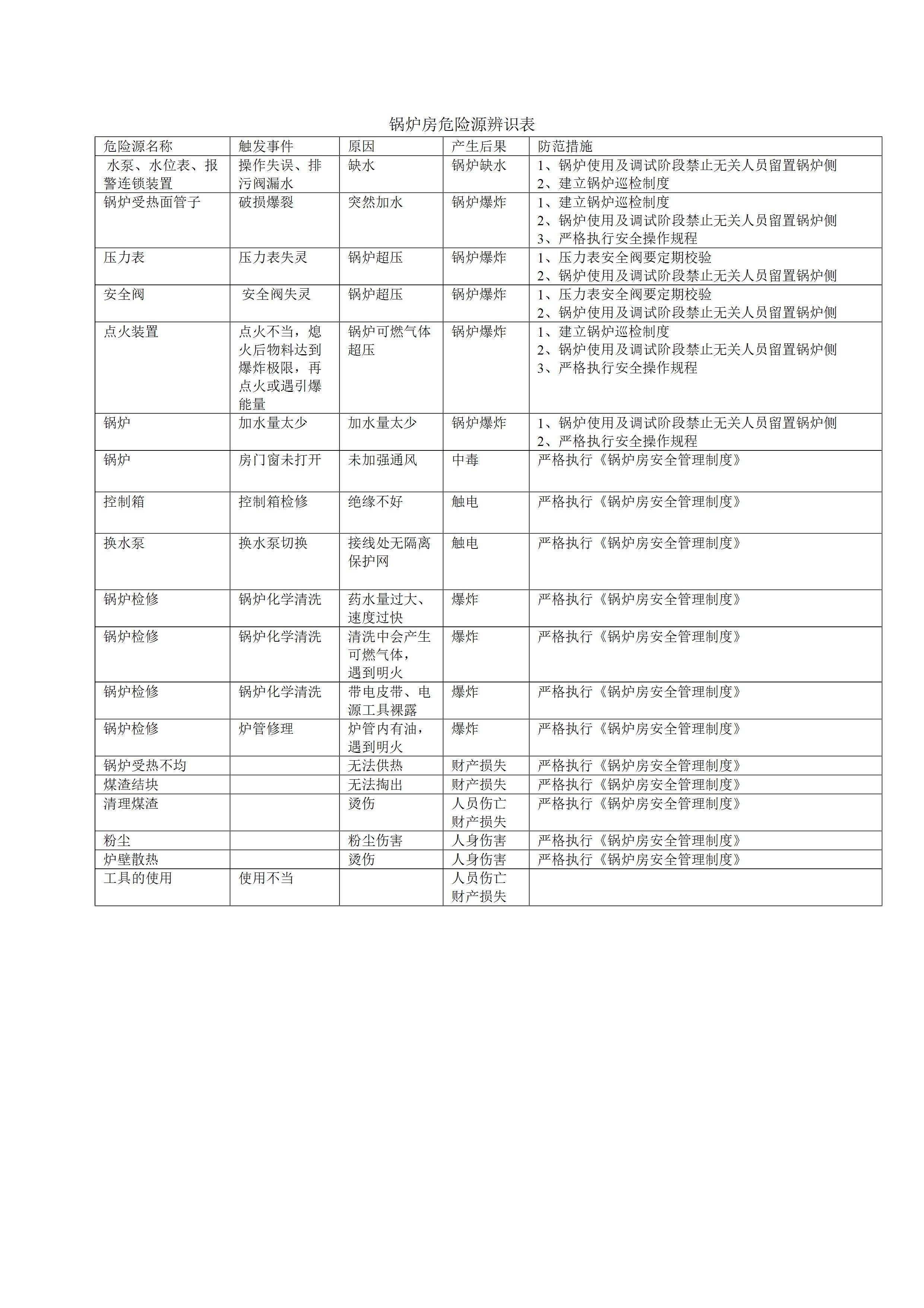 / 锅炉房危险源辨识表