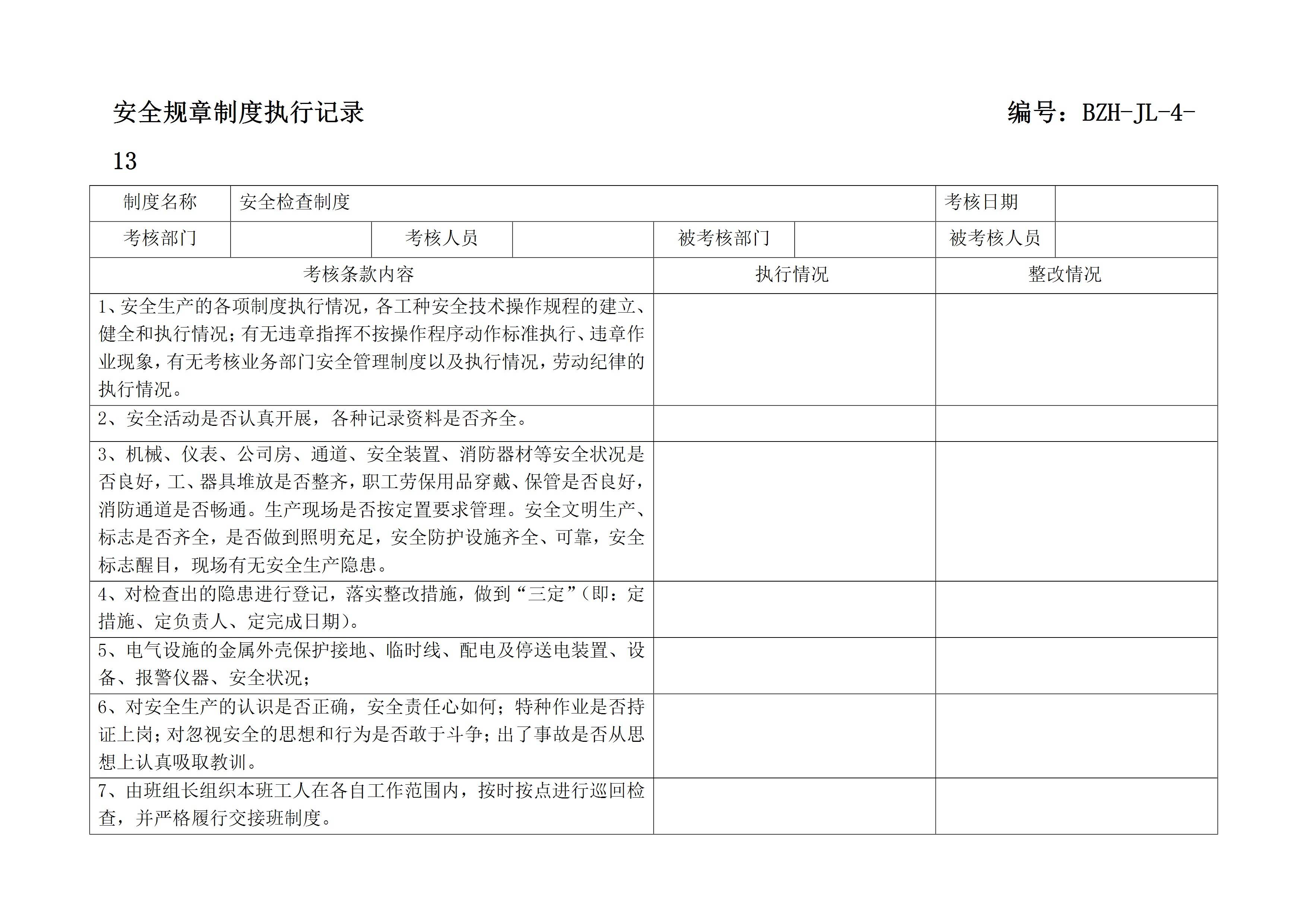 / 规章制度执行记录(参考)