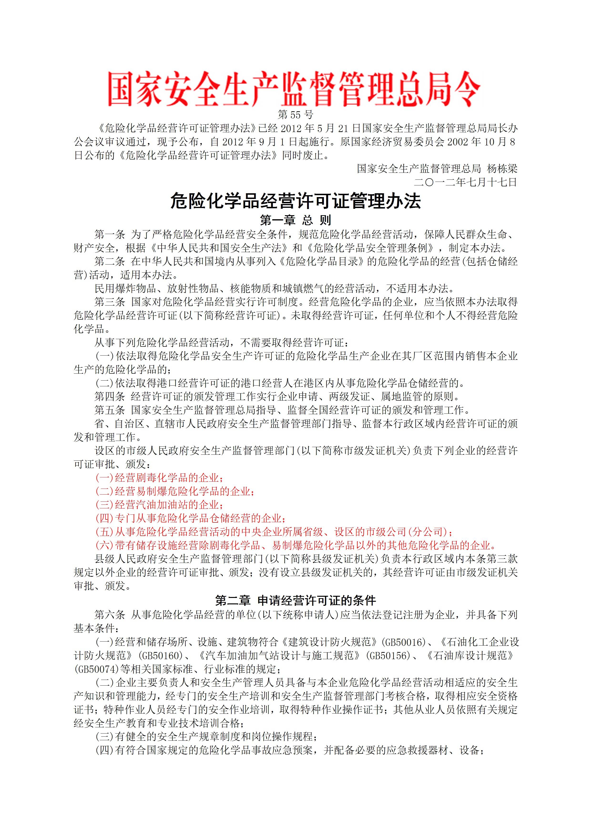 / 国家安监总局令[2012]第55号危险化学品经营许可证管理办法