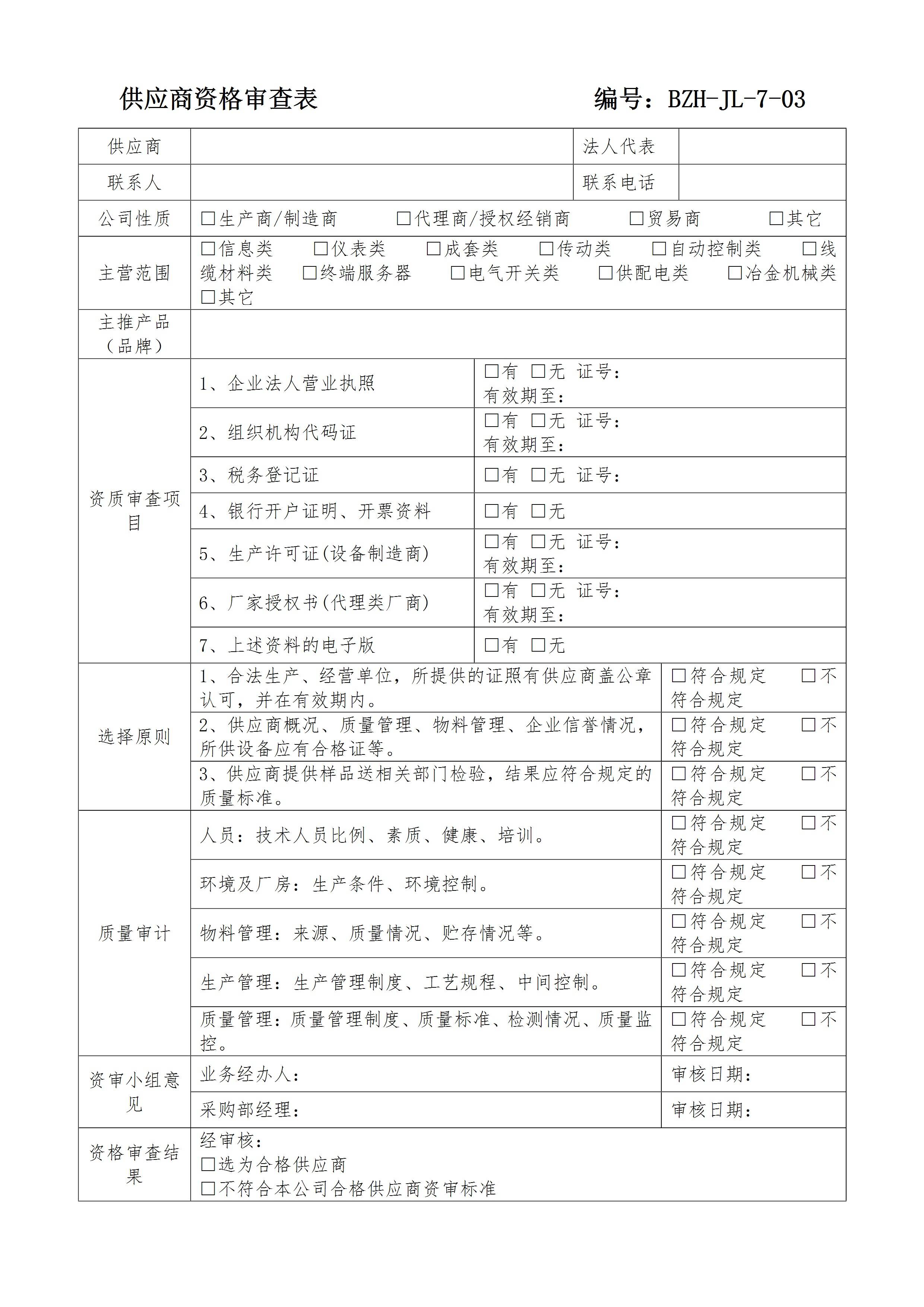 / 供应商资格审查表