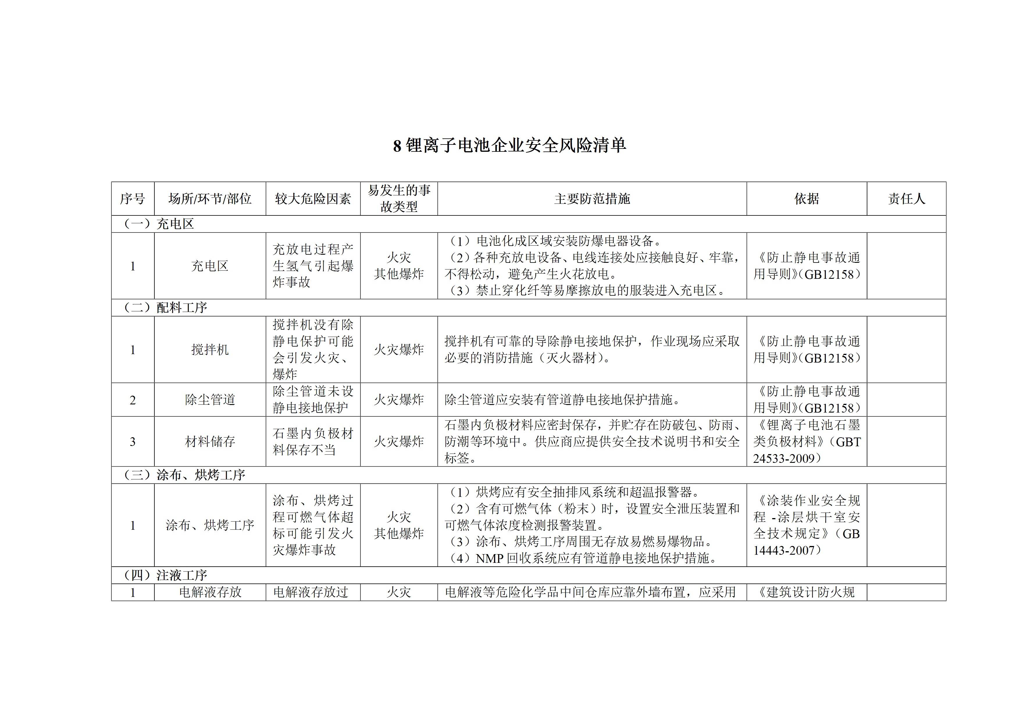 / 锂离子电池企业企业安全风险辨识分级管控清单