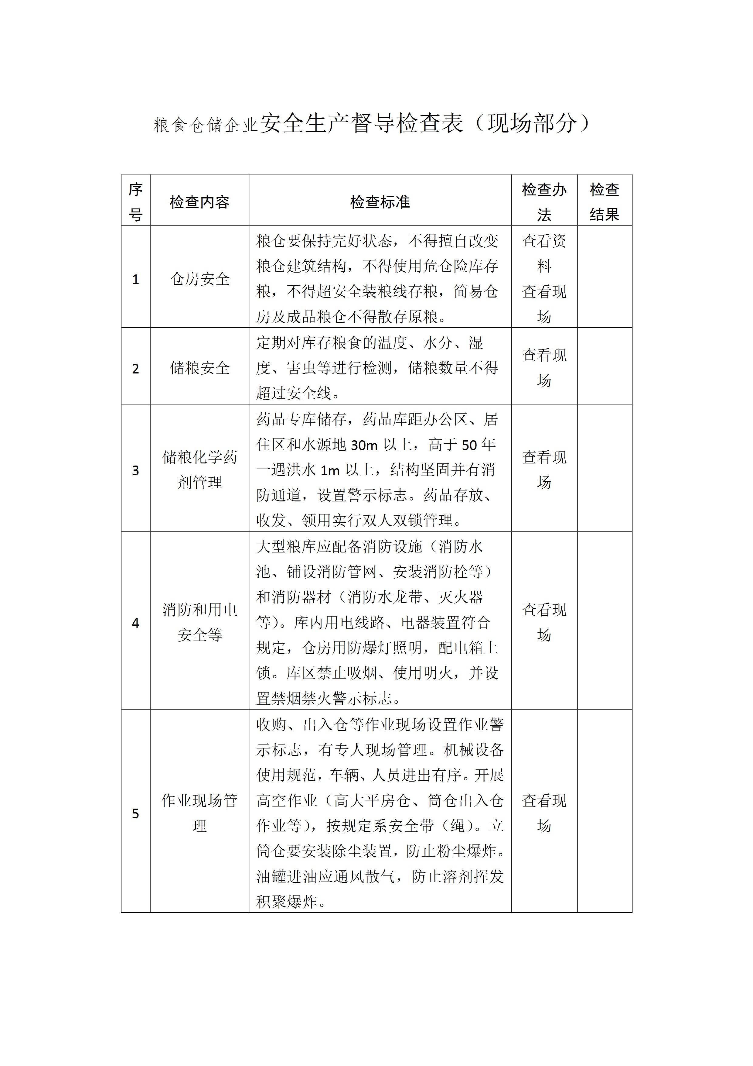 粮食仓储企业安全生产督导检查表