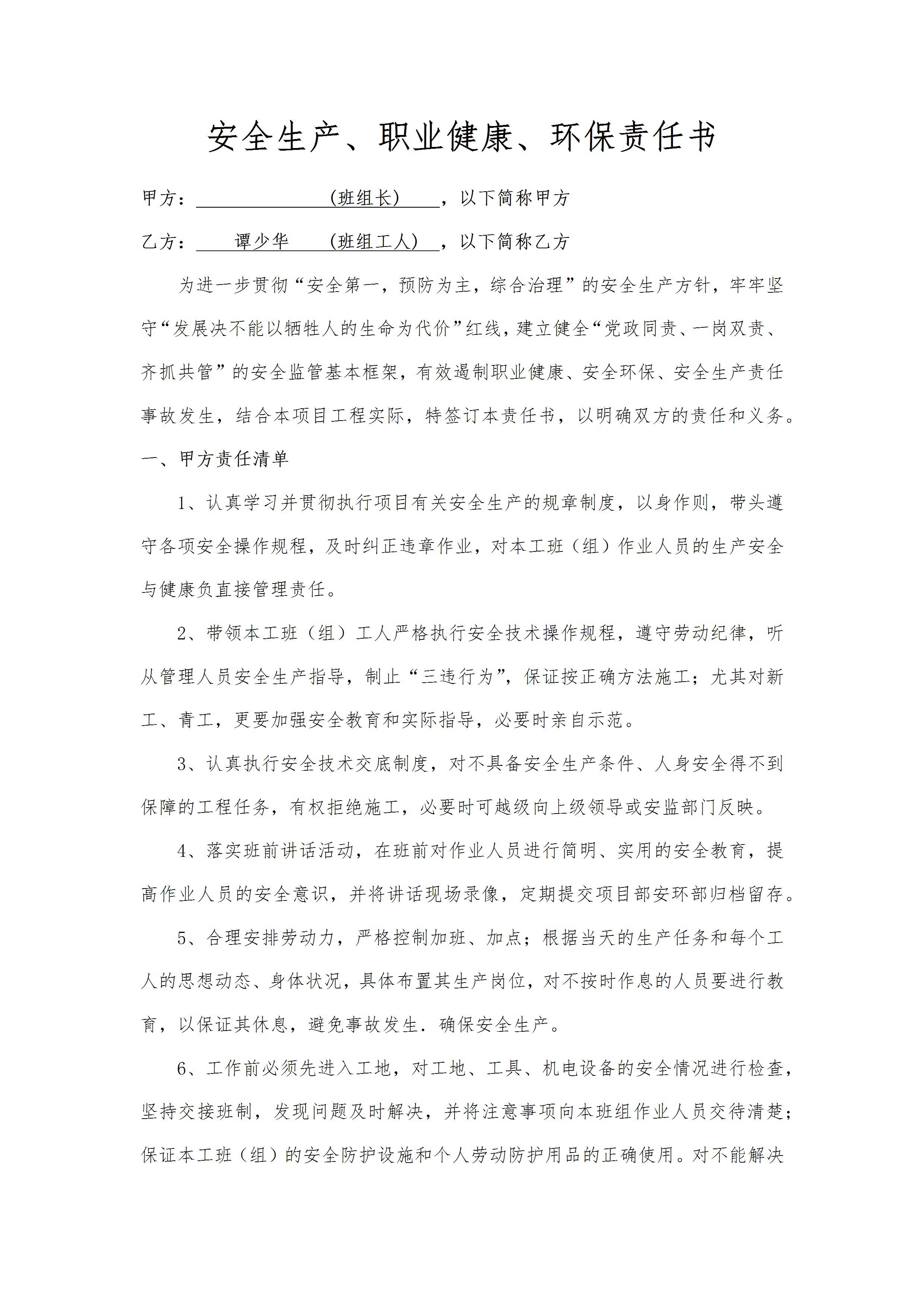 / 空压机操作安全生产责任状