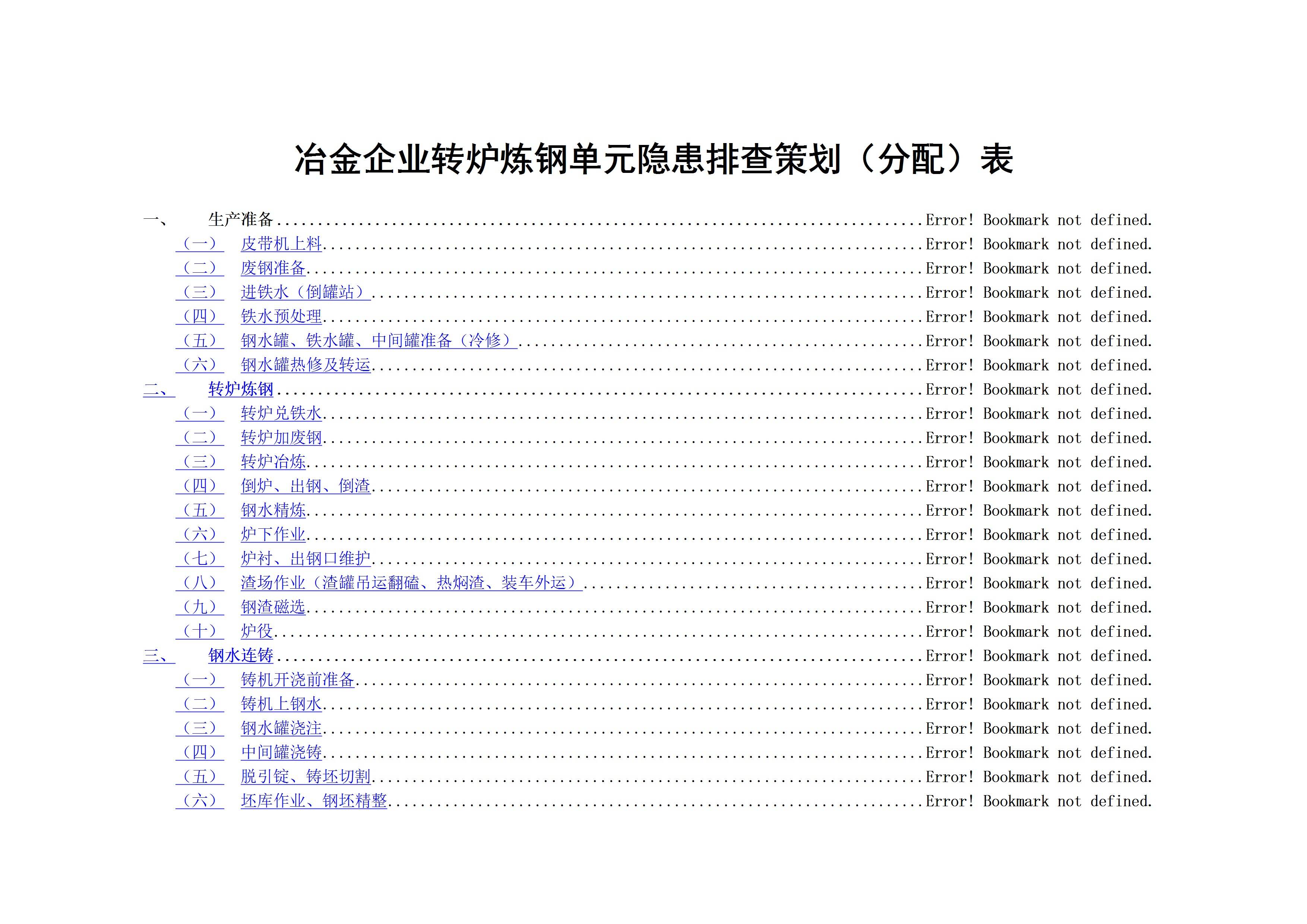 炼钢单元隐患排查策划(分配)表