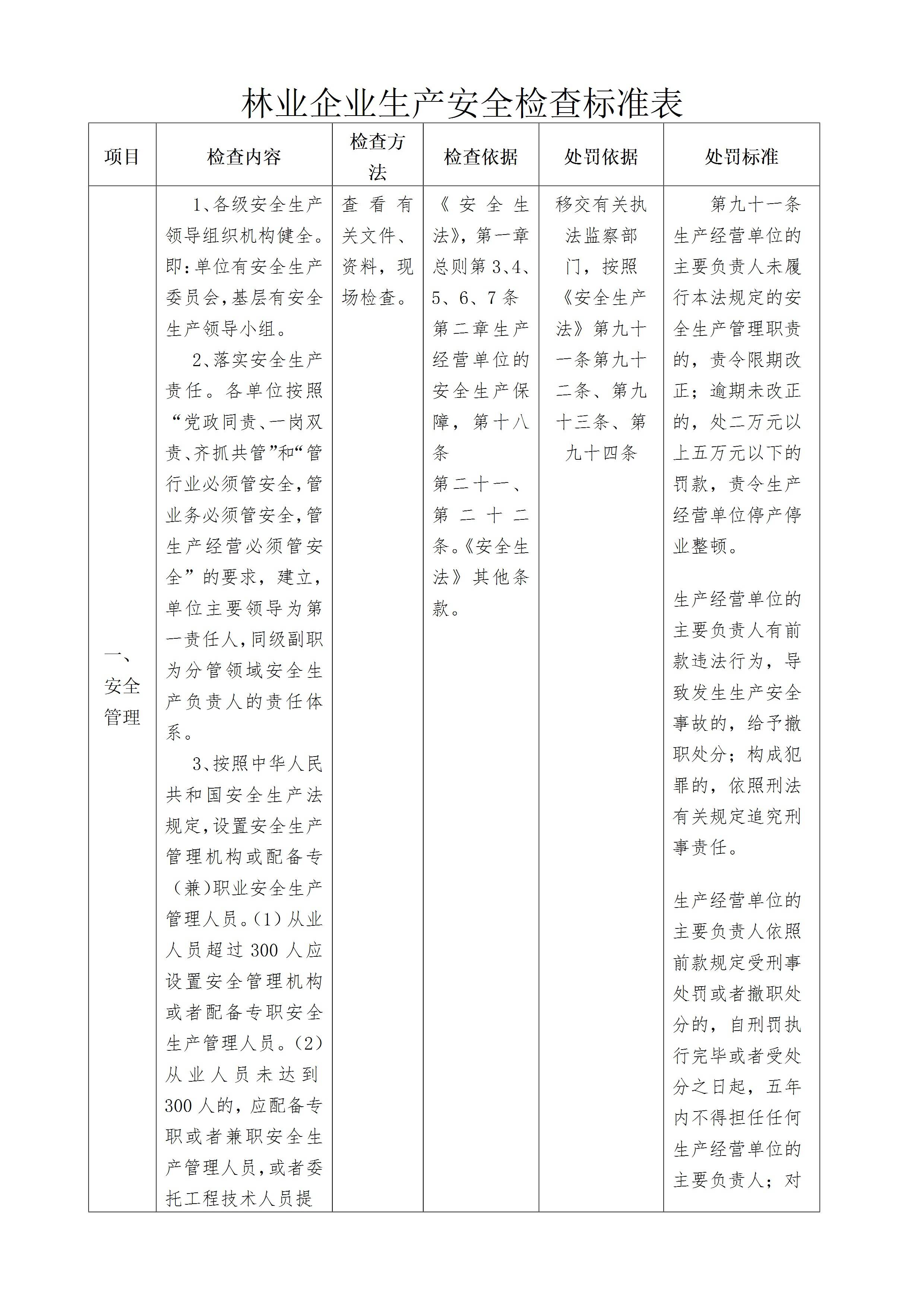 / 林业企业生产安全检查标准表